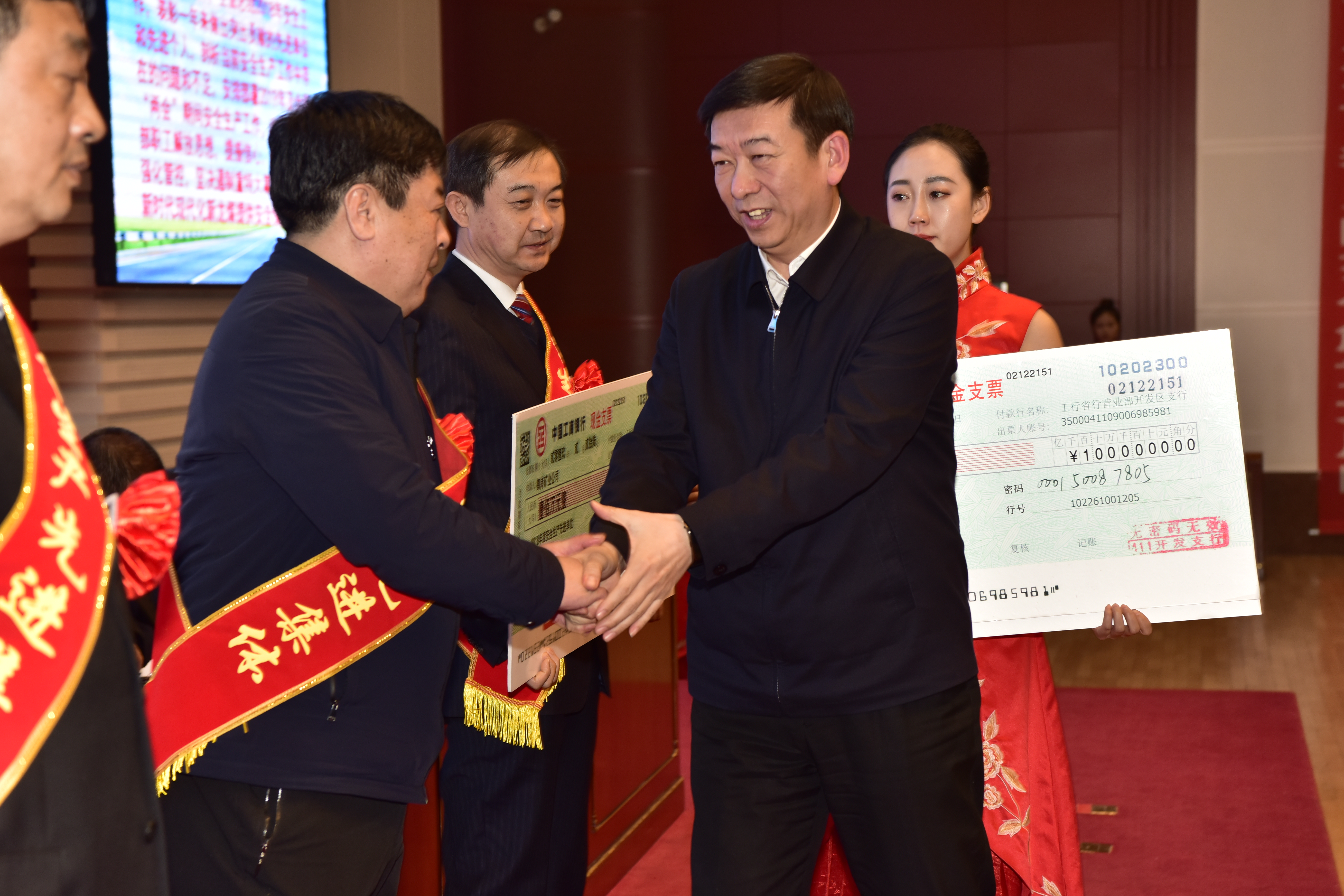 集團(tuán)公司領(lǐng)導(dǎo)分別為受到表彰的先進(jìn)單位和先進(jìn)個(gè)人頒獎(jiǎng)。