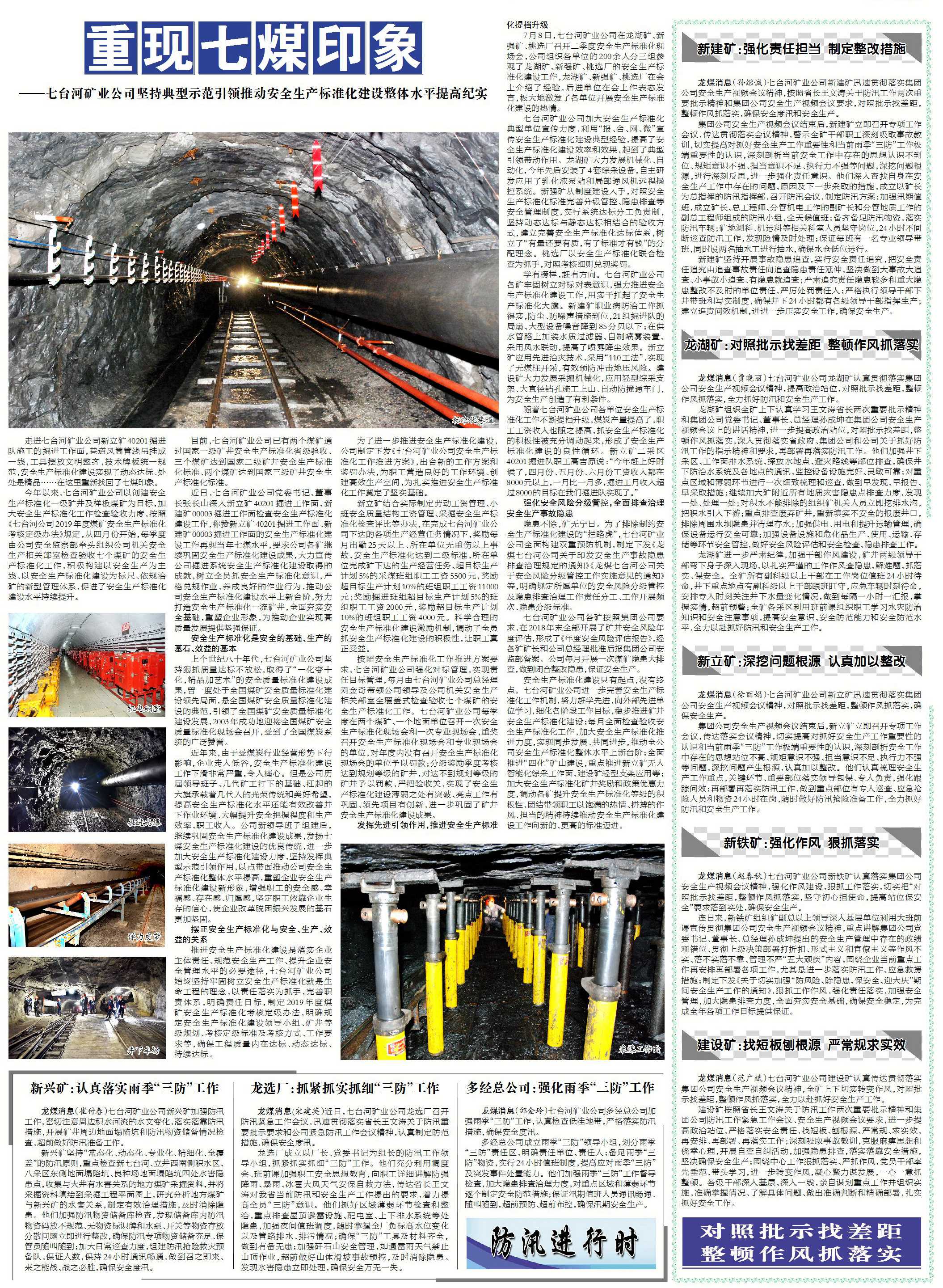 今年以來,七臺河礦業(yè)公司以創(chuàng)建安全生產(chǎn)標(biāo)準(zhǔn)化一級礦井及樣板煤礦為目標(biāo),加大安全生產(chǎn)標(biāo)準(zhǔn)化工作檢查驗收力度,按照《七臺河公司2019年度煤礦安全生產(chǎn)標(biāo)準(zhǔn)化考核定級辦法》規(guī)定,從四月份開始,每季度由公司安全監(jiān)察部牽頭組織公司機關(guān)安全生產(chǎn)相關(guān)部室檢查驗收七個煤礦的安全生產(chǎn)標(biāo)準(zhǔn)化工作,積極構(gòu)建以安全生產(chǎn)為主線、以安全生產(chǎn)標(biāo)準(zhǔn)化建設(shè)為標(biāo)尺、依規(guī)治礦的新型管理體系,促進了安全生產(chǎn)標(biāo)準(zhǔn)化建設(shè)水平持續(xù)提升。