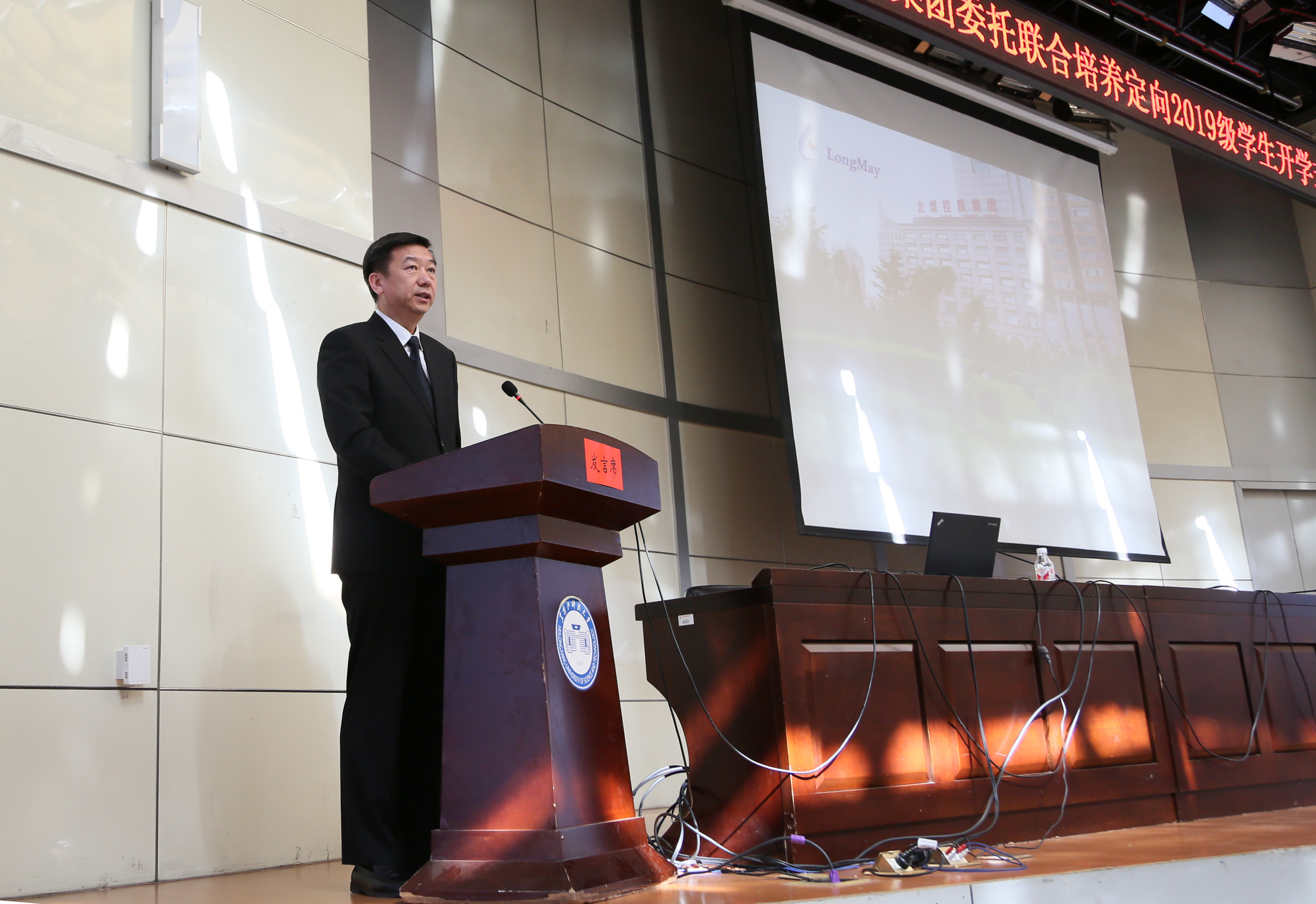 集團(tuán)公司黨委書記、董事長、總經(jīng)理孫成坤為龍煤學(xué)院新生開講入學(xué)第一課。攝影/閆英群
