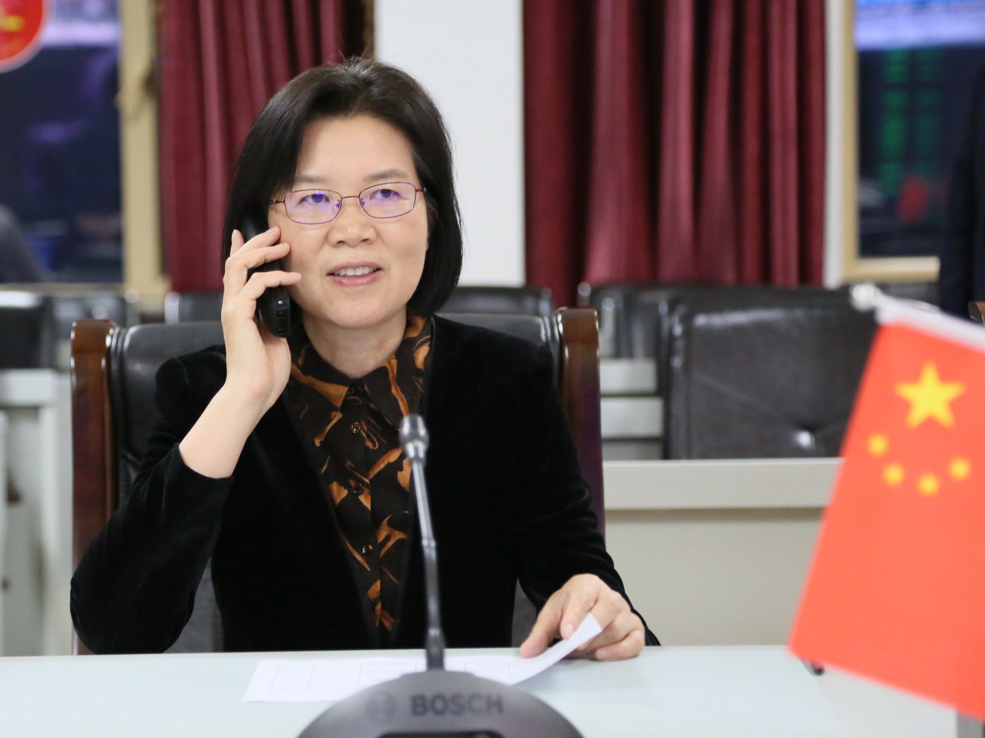 副省長(zhǎng)沈瑩在集團(tuán)公司總部調(diào)度指揮中連線(xiàn)雞礦公司新發(fā)煤礦井下中央變電所值班人員,并向節(jié)日期間堅(jiān)守崗位的煤礦干部工人致以節(jié)日的問(wèn)候。攝影 閆英群