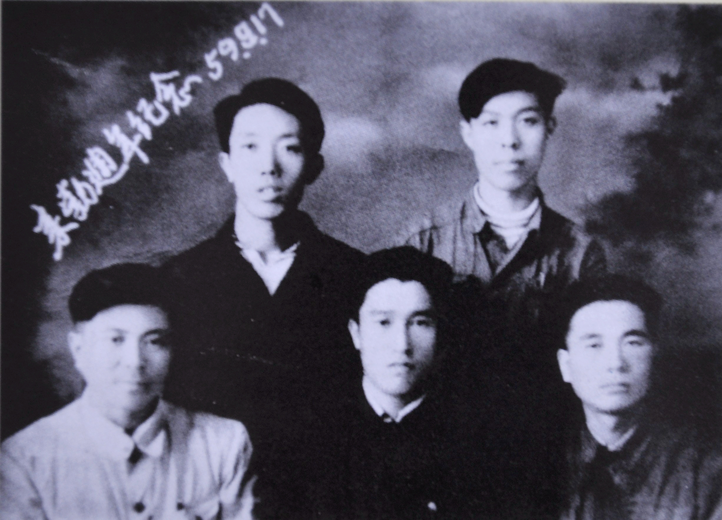 1958年9月23日,第一批來七臺(tái)河礦區(qū)的五位建設(shè)者,前中是籌備處黨委副書記張玉新,前右是工程師楊安華,前左是科長(zhǎng)王維圃,后左是秘書王恩才,后右是技術(shù)員張振清
