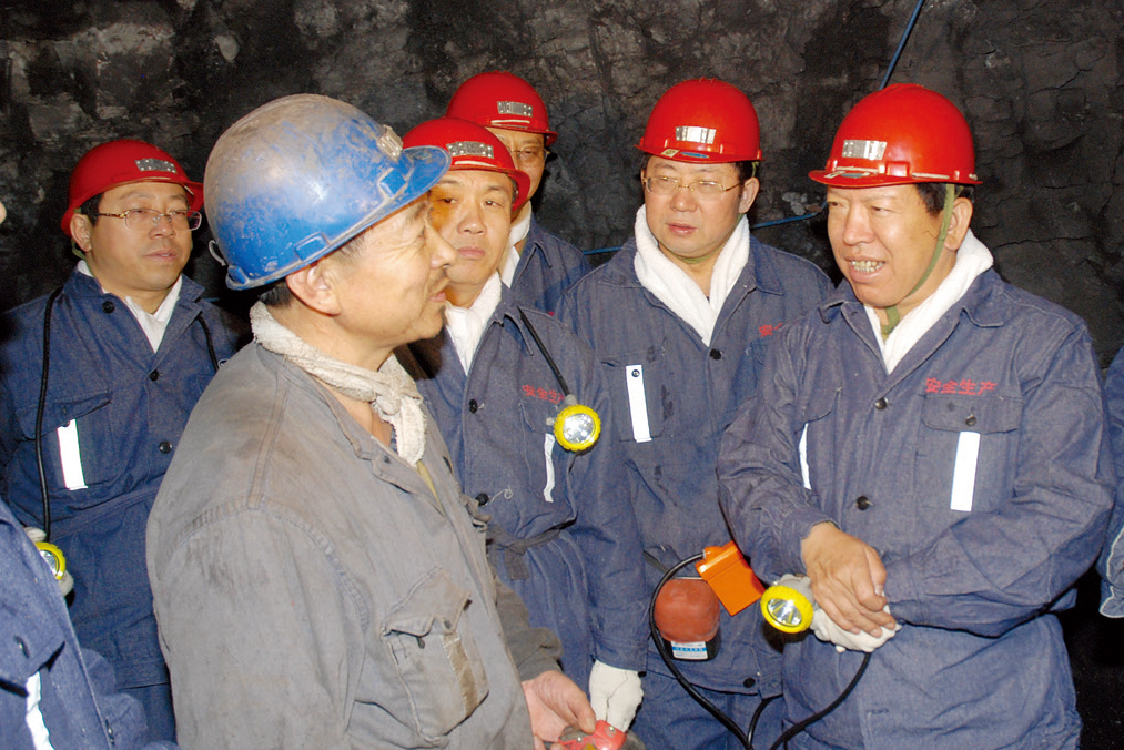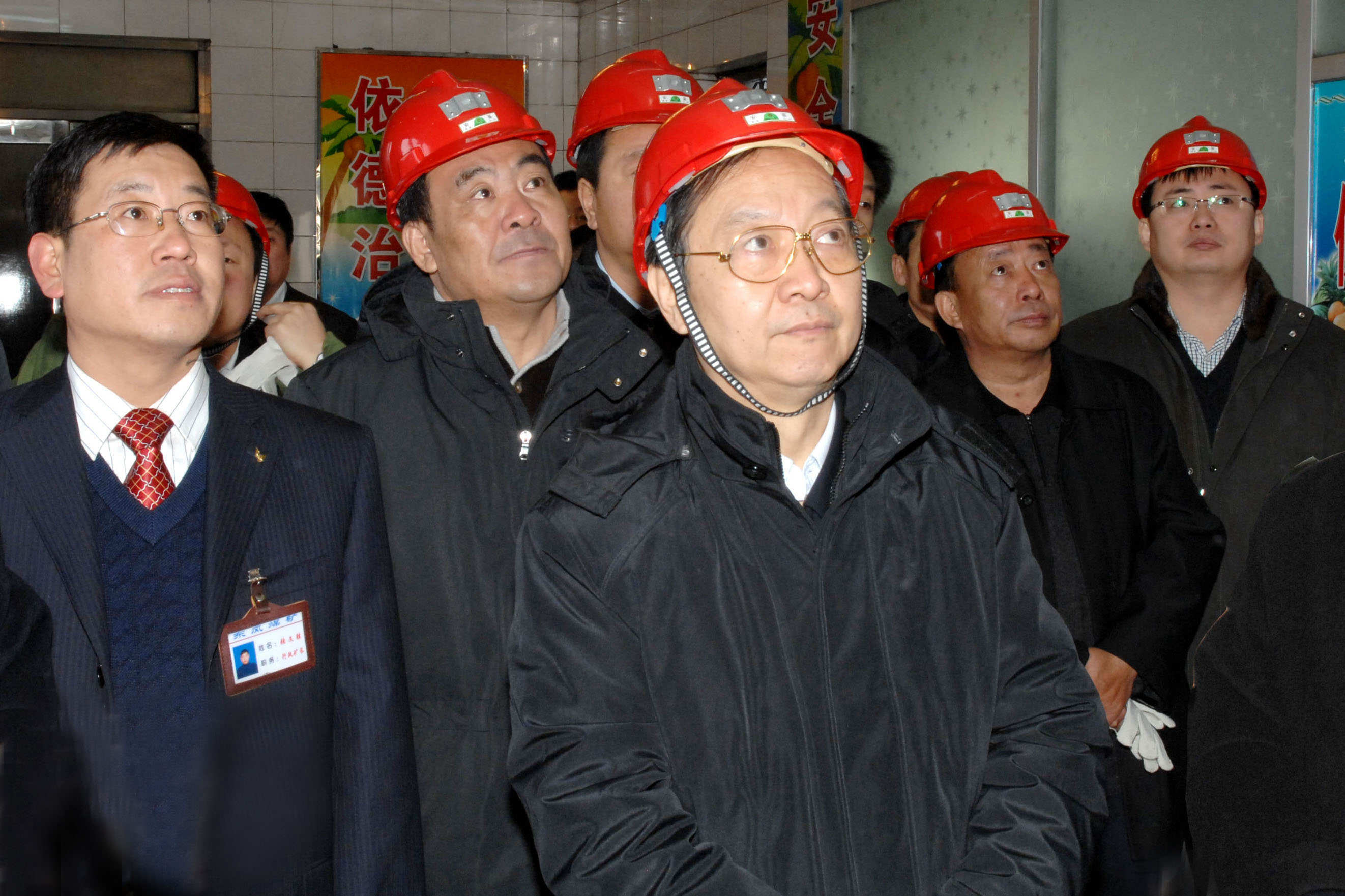 2007年11月21日,國務(wù)院安委會(huì)副主任、國家安監(jiān)總局局長(zhǎng)李毅中(前)率安全督查組到七臺(tái)河公司督查