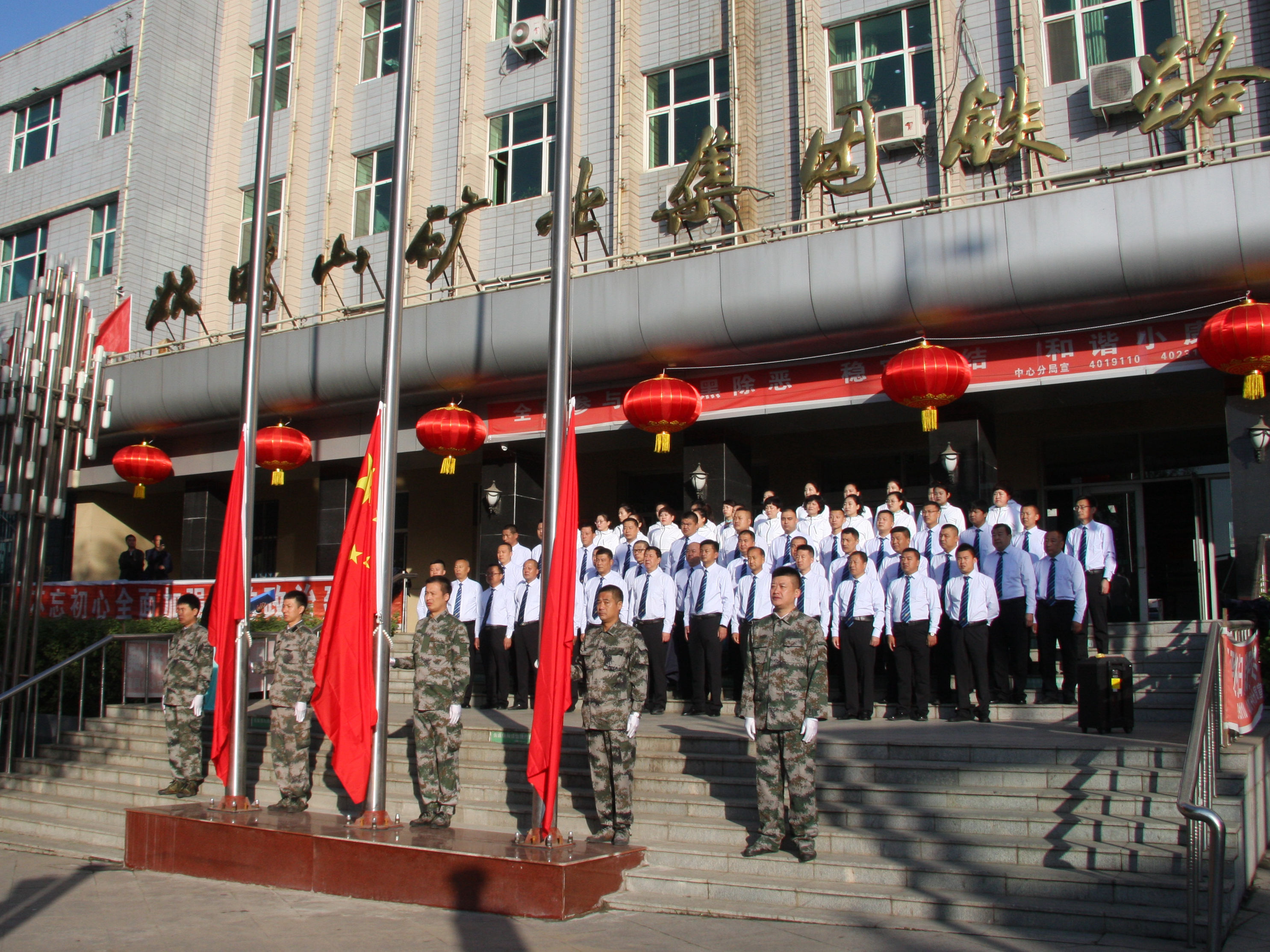 圖為鐵路運(yùn)輸部升國旗儀式