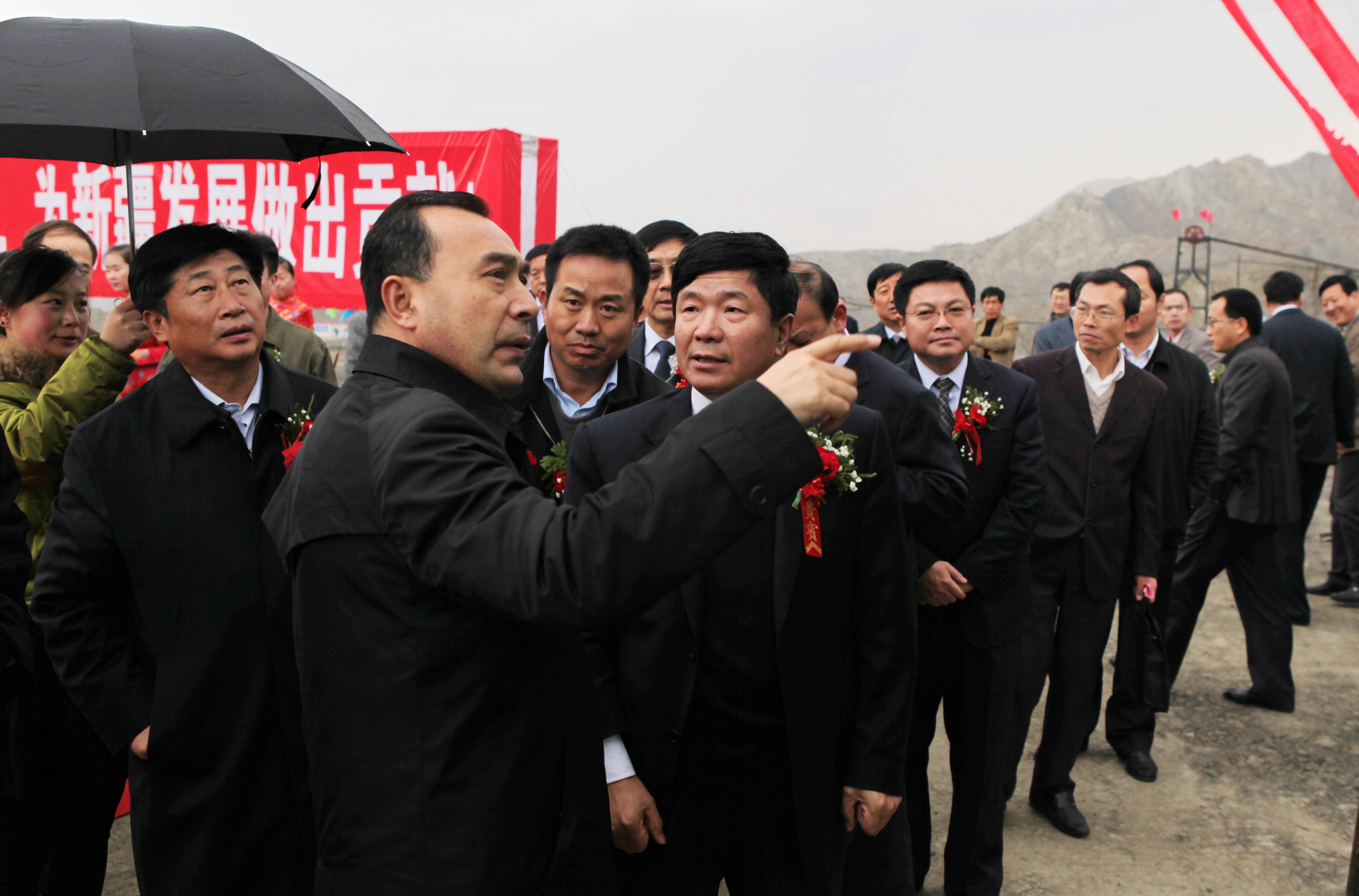 時(shí)任新疆自治區(qū)政府副主席庫(kù)熱西·買(mǎi)合蘇提(左二)對(duì)龍煤進(jìn)疆創(chuàng)業(yè)寄予殷切期望。