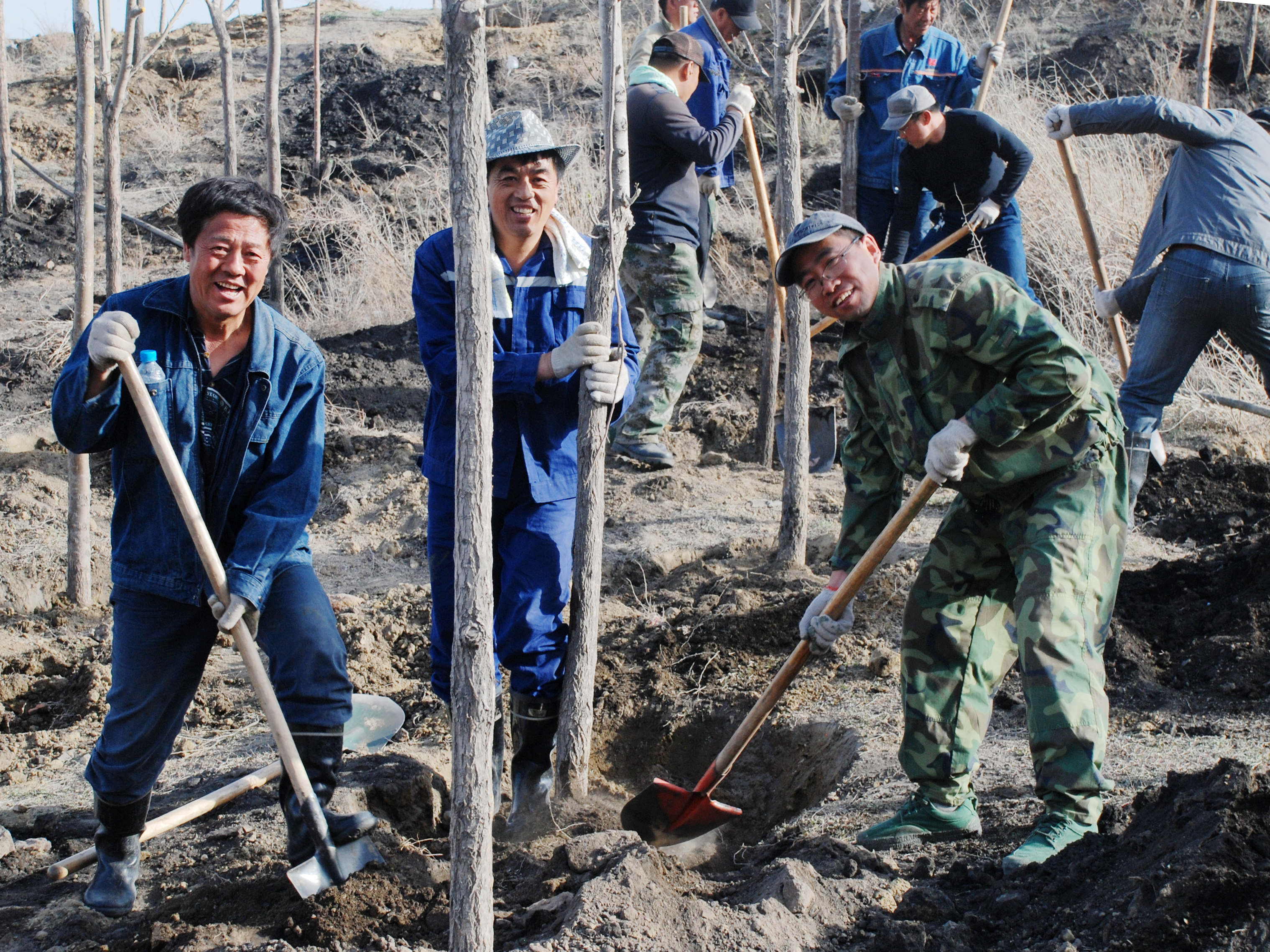 圖為2011年初春,新疆公司機(jī)關(guān)干部義務(wù)獻(xiàn)工參加西山煤礦植樹(shù)綠化活動(dòng)。
