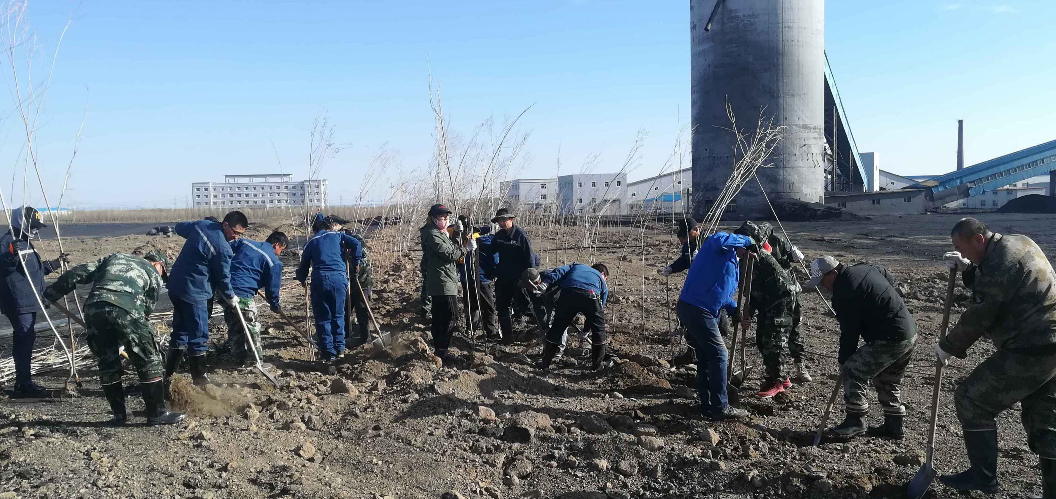 圖為黑眼泉煤礦干部職工利用工休工余時(shí)間在荒漠中植樹(shù)造林。