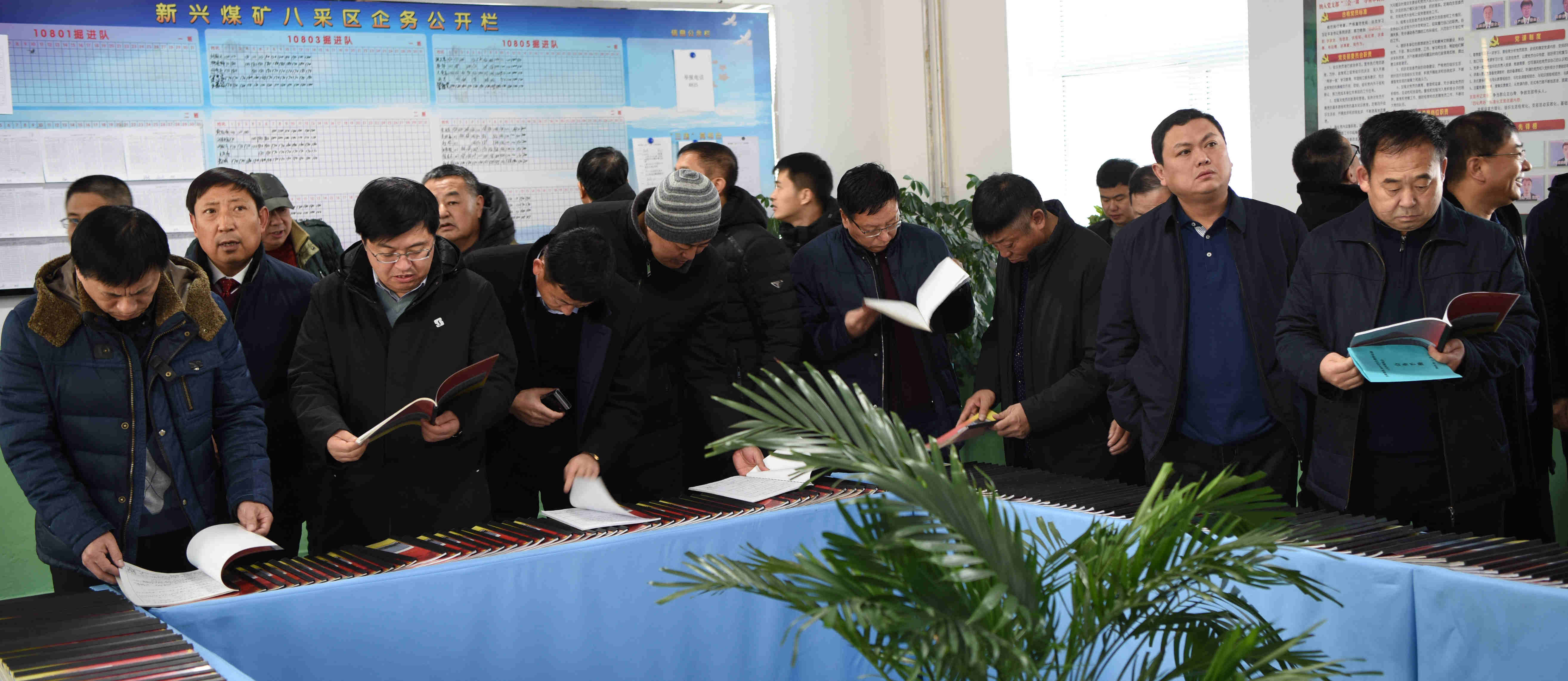 參會(huì)人員在新興礦檢查安全教育培訓(xùn)內(nèi)業(yè)。袁小松 攝
