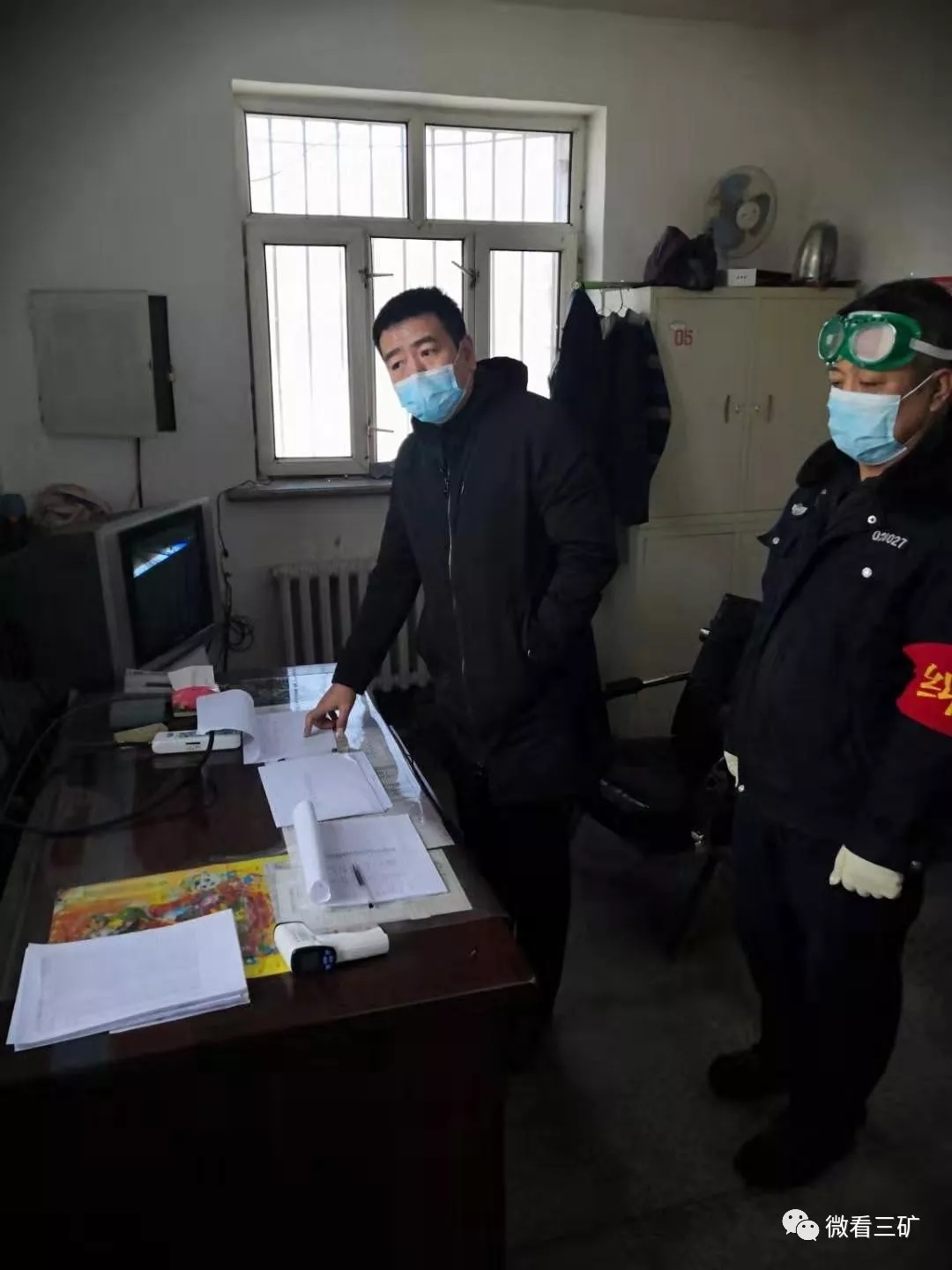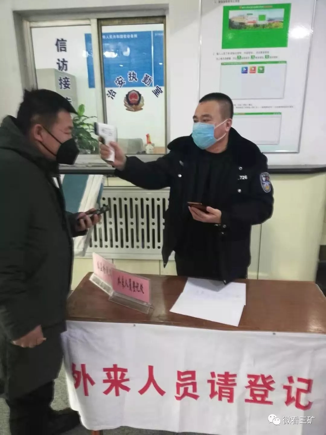 勇當(dāng)戰(zhàn)“疫”中的“急先鋒”?!澳?,體溫36.7度,請下車登記”,“請您把口罩帶好再進礦”,該礦武保科工作人員用溫暖的話語不停的提醒職工。