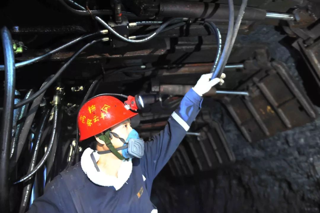 南山煤礦高檔區(qū)礦工師傅們正在對采煤工作面設(shè)備進行維護