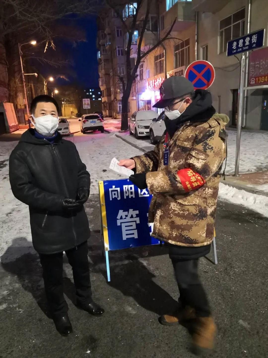 為了防止疫情大肆蔓延,全國(guó)每個(gè)城市中的社區(qū)、街道成為了疫情防控前沿陣地的第一線。是選擇“在家也是做貢獻(xiàn)”,還是選擇去一線當(dāng)志愿者?“疫情面前,沒(méi)有局外人,我要為戰(zhàn)‘疫’一線出份力!”他以一名普通黨員志愿者的身份,主動(dòng)向所居住的鶴崗市向陽(yáng)區(qū)第八社區(qū)報(bào)到,積極投身到社區(qū)疫情防控戰(zhàn)斗之中。在志愿工作中,他承擔(dān)著老君堂街道電大卡點(diǎn)的交通管控工作,每天分時(shí)段對(duì)過(guò)往人員進(jìn)行檢查,耐心細(xì)致地講解防控知識(shí)、查詢出入證件、勸導(dǎo)違規(guī)人員、指導(dǎo)填報(bào)龍江健康碼,有時(shí)早起7點(diǎn)上崗,有時(shí)晚班8點(diǎn)下崗,在零下20度的風(fēng)雪中一站就是兩個(gè)小時(shí),沒(méi)有一句怨言。當(dāng)社區(qū)領(lǐng)導(dǎo)因心疼而給他調(diào)整一下輪崗時(shí)間時(shí),他則憨厚地說(shuō):“什么時(shí)間上崗都可以,我服從社區(qū)安排?!苯刂?月27日,經(jīng)他核查的人員200多人次、勸返無(wú)證外出人員58人次。同時(shí),他在管控卡點(diǎn)執(zhí)勤交班后,還積極協(xié)助社區(qū)網(wǎng)絡(luò)員開(kāi)展所屬居民電子信息表格錄入工作,累計(jì)完成個(gè)人信息填報(bào)120余份。他認(rèn)真負(fù)責(zé)的態(tài)度、精準(zhǔn)高效的執(zhí)行力得到了社區(qū)領(lǐng)導(dǎo)和志愿者們的高度評(píng)價(jià)。