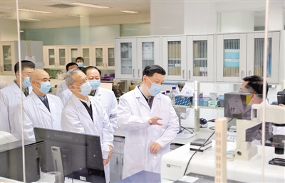 新華社北京3月2日電 中共中央總書記、國(guó)家主席、中央軍委主席習(xí)近平2日在北京考察新冠肺炎防控科研攻關(guān)工作,代表黨中央向奮斗在疫情防控科研攻關(guān)一線的廣大科技工作者表示衷心的感謝和誠(chéng)摯的問候。他強(qiáng)調(diào),人類同疾病較量最有力的武器就是科學(xué)技術(shù),人類戰(zhàn)勝大災(zāi)大疫離不開科學(xué)發(fā)展和技術(shù)創(chuàng)新。要把新冠肺炎防控科研攻關(guān)作為一項(xiàng)重大而緊迫任務(wù),綜合多學(xué)科力量,統(tǒng)一領(lǐng)導(dǎo)、協(xié)同推進(jìn),在堅(jiān)持科學(xué)性、確保安全性的基礎(chǔ)上加快研發(fā)進(jìn)度,盡快攻克疫情防控的重點(diǎn)難點(diǎn)問題,為打贏疫情防控人民戰(zhàn)爭(zhēng)、總體戰(zhàn)、阻擊戰(zhàn)提供強(qiáng)大科技支撐。