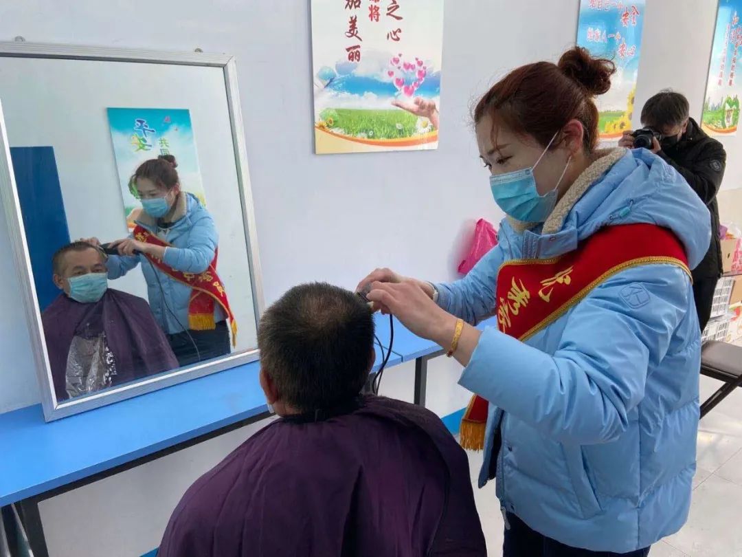 雙陽礦女工家屬協(xié)管員在農(nóng)歷二月二日為復(fù)工職工理發(fā)