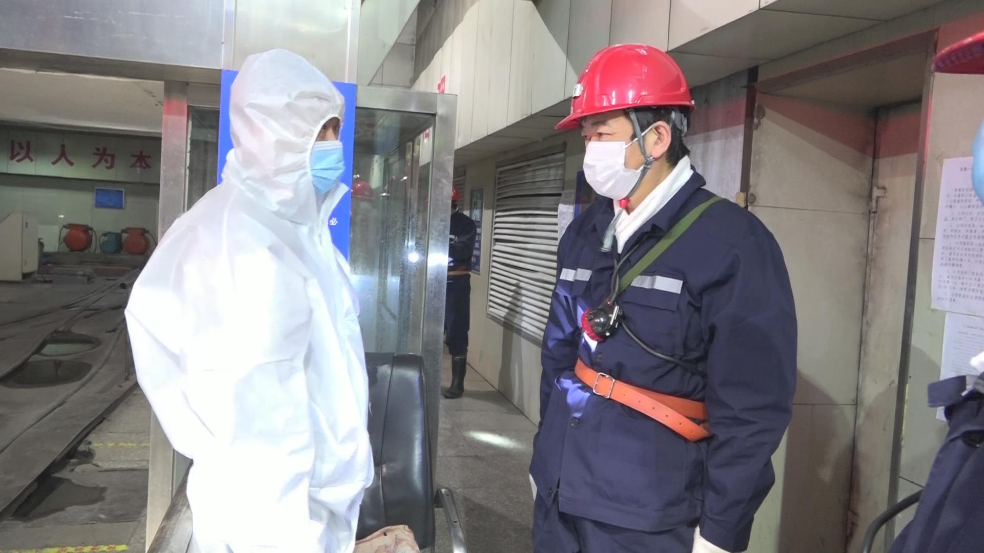孫成坤在入井檢身處向檢身人員了解疫情防控措施落實(shí)情況