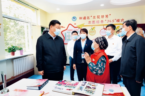 2020年6月8日至10日,中共中央總書記、國家主席、中央軍委主席習(xí)近平在寧夏考察。這是6月8日下午,習(xí)近平在吳忠市利通區(qū)金花園社區(qū)黨群活動服務(wù)中心,同社區(qū)志愿者代表親切交談。 新華社記者 鞠鵬/攝