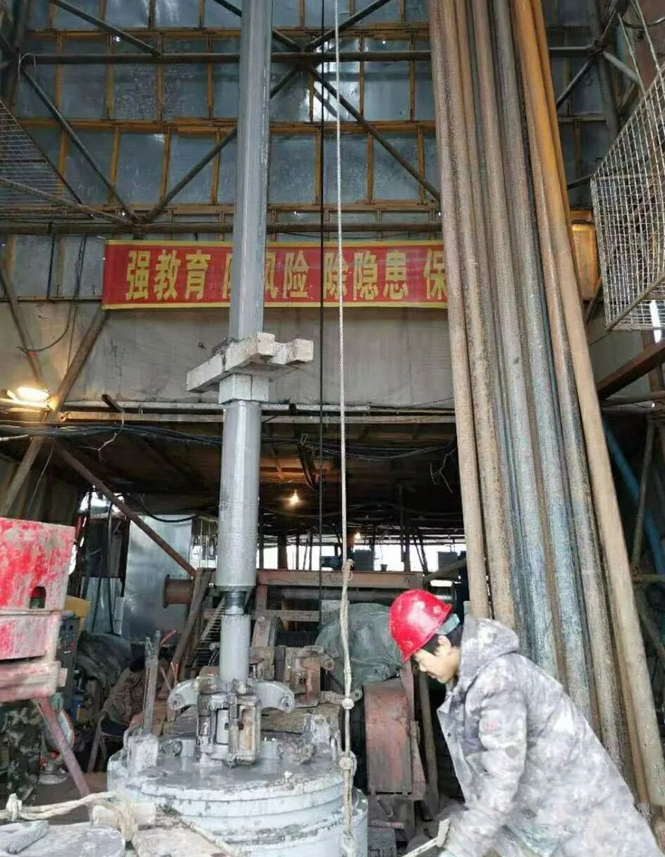 圖為雙陽礦水害治理一期工程Y9水平分支終孔上提鉆具,為注漿做準備。