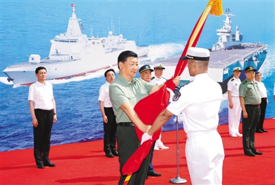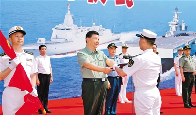 交接入列儀式在中國(guó)人民解放軍軍歌聲中結(jié)束。隨后,習(xí)近平登上新入列艦艇,檢閱艦艇儀仗隊(duì),察看有關(guān)武器裝備,同官兵進(jìn)行交流,并在航泊日志上鄭重簽名。