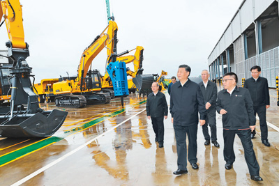 當天下午,習(xí)近平來到柳州市考察調(diào)研。在廣西柳工集團有限公司,習(xí)近平先后走進公司展廳、研發(fā)實驗中心、挖掘機裝配廠等,聽取企業(yè)發(fā)展情況介紹,察看主要產(chǎn)品展示,同企業(yè)職工和技術(shù)研發(fā)人員親切交談。習(xí)近平強調(diào),制造業(yè)高質(zhì)量發(fā)展是我國經(jīng)濟高質(zhì)量發(fā)展的重中之重,建設(shè)社會主義現(xiàn)代化強國、發(fā)展壯大實體經(jīng)濟,都離不開制造業(yè),要在推動產(chǎn)業(yè)優(yōu)化升級上繼續(xù)下功夫。只有創(chuàng)新才能自強、才能爭先,要堅定不移走自主創(chuàng)新道路,把創(chuàng)新發(fā)展主動權(quán)牢牢掌握在自己手中。要堅持黨對國有企業(yè)的全面領(lǐng)導(dǎo),堅持加強黨的領(lǐng)導(dǎo)和完善公司治理相統(tǒng)一,在深化企業(yè)改革中搞好黨的建設(shè),充分發(fā)揮黨組織在企業(yè)改革發(fā)展中的領(lǐng)導(dǎo)核心作用。