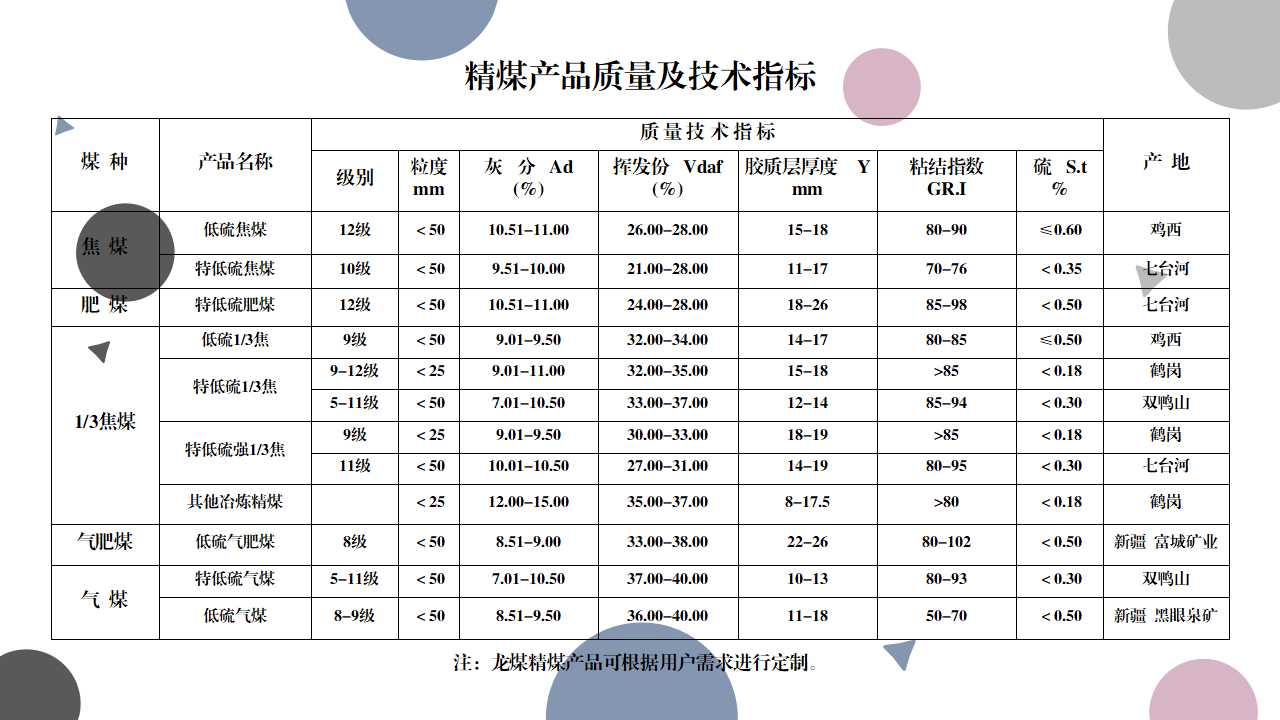 龍煤集團主營產(chǎn)品——精煤系列產(chǎn)品