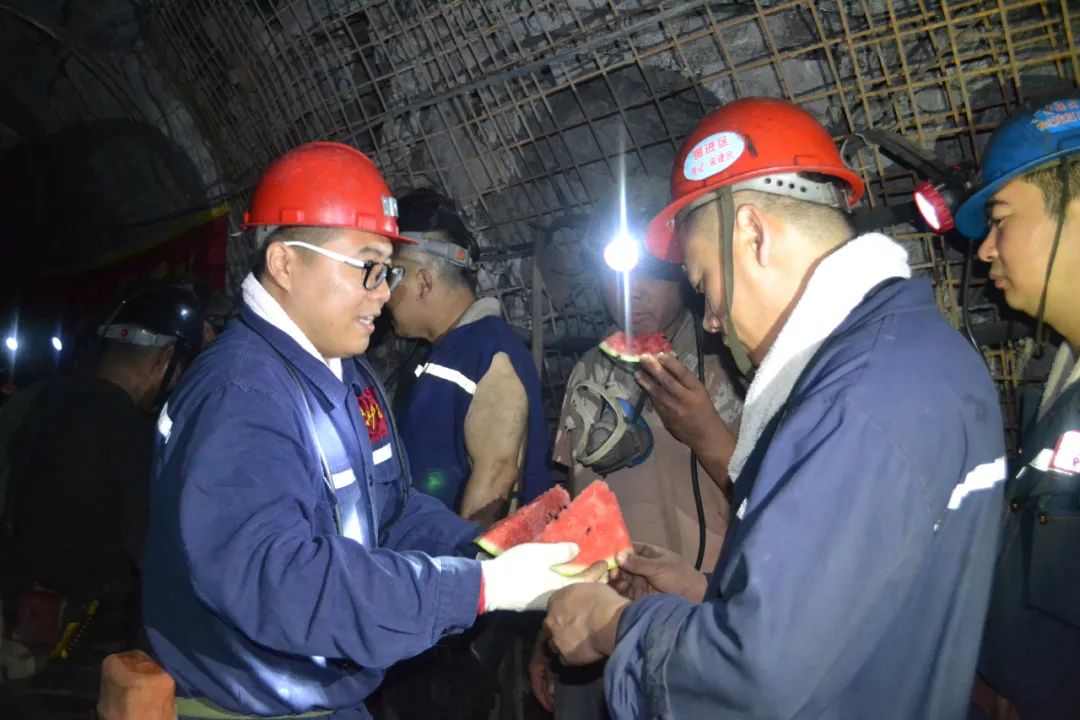 升井后,雞礦公司團(tuán)委又帶著慰問品來到,正在烈日下鋪設(shè)水泥地面的機(jī)電區(qū)職工,汗水都浸透了他們的衣衫,接過了清爽可口的大塊西瓜和冒著絲絲涼意的涼飲,職工們露出了開心的笑容。