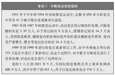保持黨員隊(duì)伍活力。黨員是黨的活動(dòng)的主體。黨高度重視黨員隊(duì)伍建設(shè),在增加數(shù)量的同時(shí)提升質(zhì)量,把黨員鍛造成為一個(gè)個(gè)堅(jiān)強(qiáng)個(gè)體,黨的隊(duì)伍越來越團(tuán)結(jié)、越來越強(qiáng)大。在不同歷史時(shí)期,黨都注重結(jié)合時(shí)代特點(diǎn),最廣泛地吸收社會(huì)各方面的先進(jìn)分子,補(bǔ)充新鮮血液,使黨始終代表最廣大人民的根本利益。雖然不同時(shí)期入黨條件和程序有一些變化,但對(duì)黨員的要求都很高,入黨程序都很嚴(yán)格。成為共產(chǎn)黨員,沒有身份、學(xué)歷、財(cái)富等要求,但有著十分嚴(yán)格的政治和道德要求。申請(qǐng)入黨要履行嚴(yán)格手續(xù)、經(jīng)過認(rèn)真教育和嚴(yán)格考察后才能成為正式黨員。黨始終重視加強(qiáng)黨員隊(duì)伍教育管理,使得來源不同的黨員在黨的大熔爐里,錘煉成為堅(jiān)定的共產(chǎn)主義戰(zhàn)士。黨員不論職務(wù)高低,都必須編入黨的一個(gè)支部、小組或其他特定組織,參加黨的組織生活,接受黨內(nèi)外群眾的監(jiān)督,開展批評(píng)和自我批評(píng)。在加強(qiáng)日常教育管理的同時(shí),黨還圍繞一個(gè)時(shí)期面臨的形勢(shì)任務(wù),針對(duì)黨員隊(duì)伍存在的突出問題,開展黨內(nèi)集中教育。黨高度重視作風(fēng)建設(shè),把它作為關(guān)系人心向背、關(guān)系黨的生死存亡的重大問題,通過堅(jiān)決有力的措施,防止和懲治脫離人民、侵害人民利益的各種行為,始終保持黨同人民群眾的血肉聯(lián)系。黨的主體由健全的堅(jiān)強(qiáng)的分子組成,但也不可避免地?fù)诫s不堅(jiān)定分子、變節(jié)分子、異己分子和腐敗分子。對(duì)不合格黨員,黨及時(shí)提出警告、促其改正,嚴(yán)重者堅(jiān)決清理出黨。