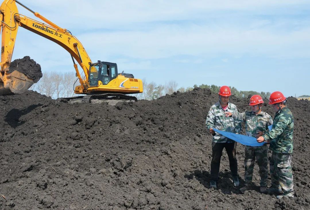 復(fù)墾工程項(xiàng)目部的5名大學(xué)生,有著10年以上的現(xiàn)場施工經(jīng)驗(yàn),其中2人是高級(jí)工程師,在經(jīng)理的帶領(lǐng)下,頂著烈日安裝變壓器、水泵、排水管,鋪墊臨時(shí)道路、放線測量、割草,疏通排水溝淤泥、檢測水質(zhì)。光排水就用了20多天,就近引到500米以外的七星河。