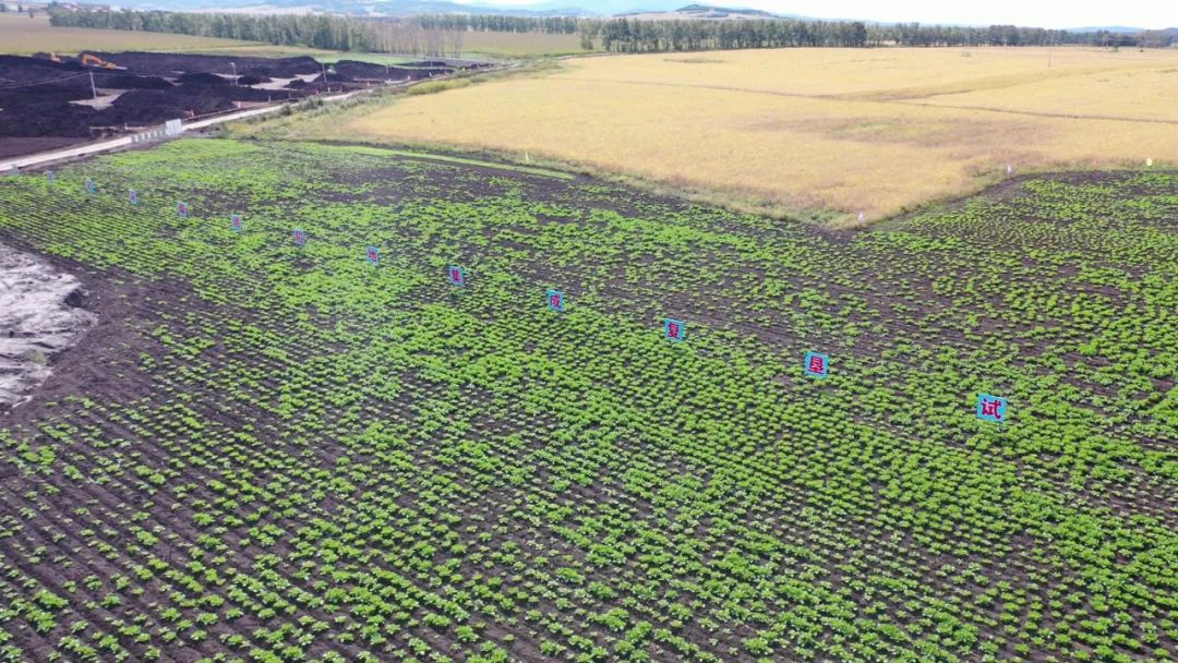 雙鴨山礦業(yè)公司雙陽礦南部一片低洼地內(nèi),推土機(jī)把矸石推平,壓路機(jī)在一遍遍壓實(shí)新墊的矸石,而另一處黑油油的土地上,芥菜開始收割,嫩生生的白菜抱心而立……