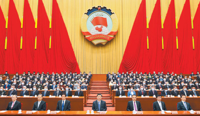 3月10日,中國(guó)人民政治協(xié)商會(huì)議第十三屆全國(guó)委員會(huì)第五次會(huì)議在北京閉幕。習(xí)近平、李克強(qiáng)、栗戰(zhàn)書(shū)、王滬寧、趙樂(lè)際、韓正、王岐山等在主席臺(tái)就座,汪洋主持閉幕會(huì)并發(fā)表講話。新華社記者 鞠 鵬攝