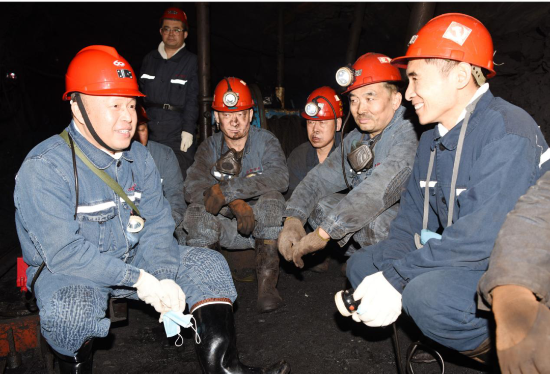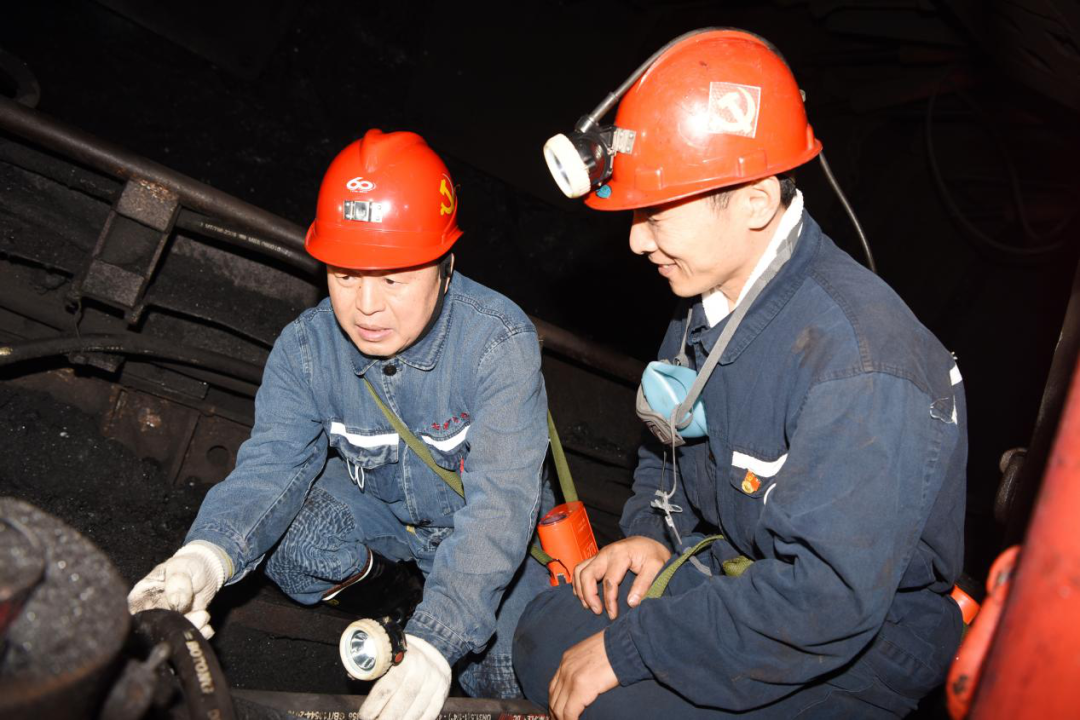 在701采煤工作面,張長山和楊會軍兩位省黨代會代表與當班礦工圍在一起,在詢問職工出勤、工資收入、礦工培訓等情況后,向礦工們宣講省黨代會精神,并暢談參會感受。