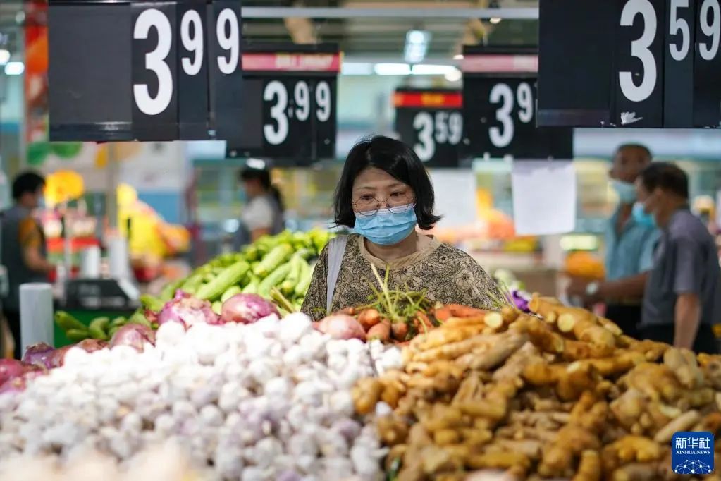 市民在江蘇省無錫市經開區(qū)華潤萬家超市購物(2022年7月7日攝)。江蘇省無錫市在做好疫情防控的同時,積極制定相關方案,制作城市保供地圖,組織大型商超、市場正常運營,全力保供穩(wěn)價,端穩(wěn)市民“菜籃子”。新華社記者 李博 攝