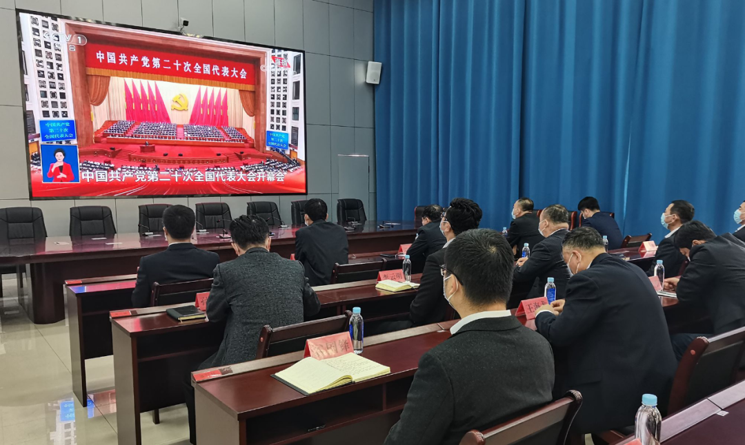 新建礦黨委組織全部黨員干部職工集中收看黨的二十大開幕會盛況。李春銘 攝