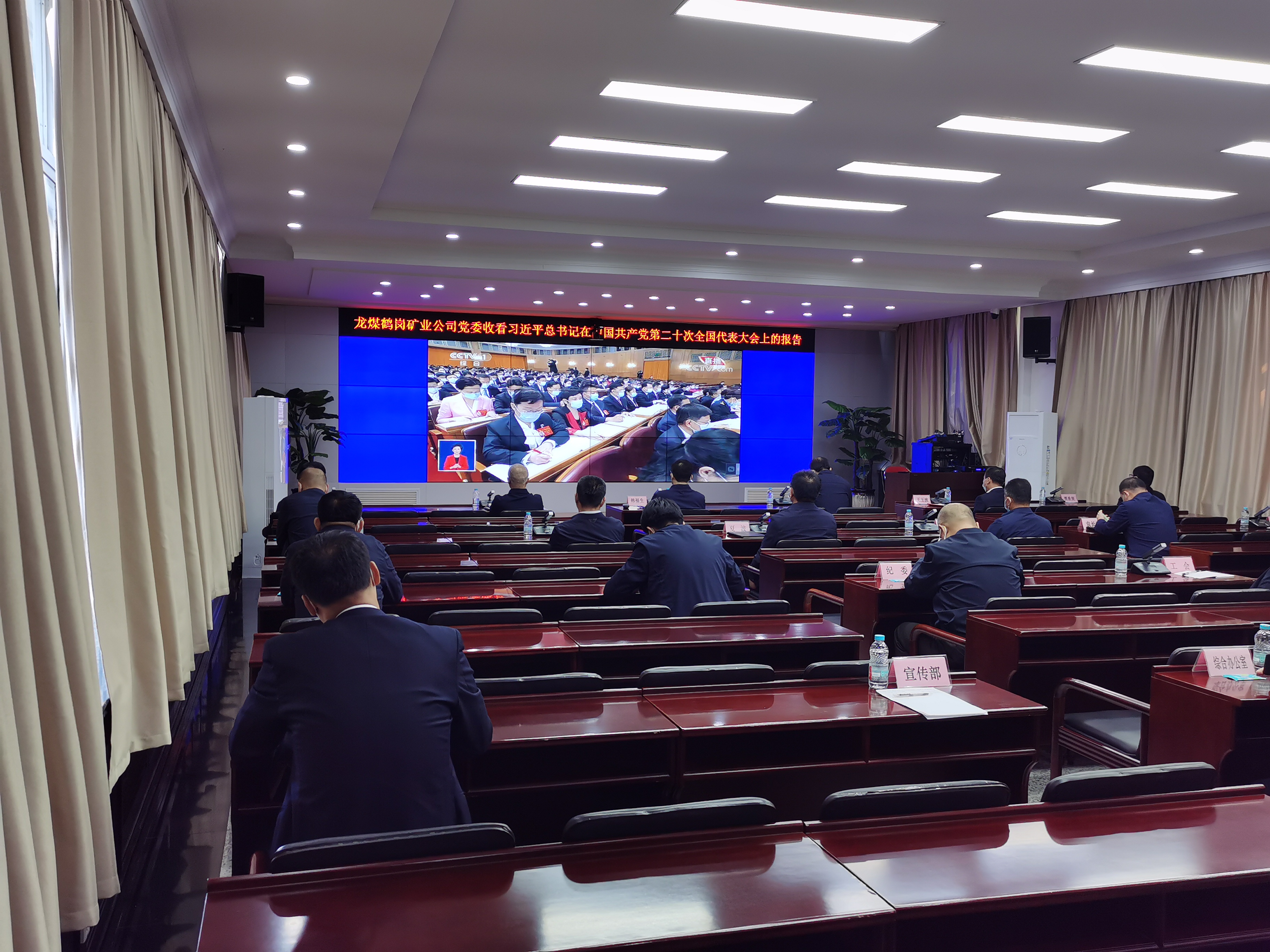 10月16日上午,中國共產(chǎn)黨第二十次全國代表大會在北京人民大會堂開幕。鶴崗礦業(yè)公司黨員干部職工通過線下會議室、學習室,線上中央主要新聞媒體和所屬網(wǎng)站、新媒體平臺以及“學習強國”學習平臺等直播平臺,利用大屏幕、手機、電腦等設(shè)備收聽收看開幕會盛況,聆聽習近平總書記所作的報告。