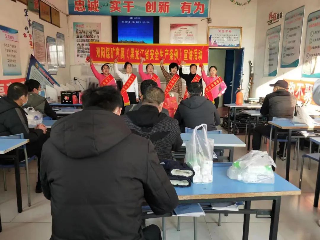 這一天,雙陽礦黨委結(jié)合礦井安全生產(chǎn)及疫情防控實際,利用班前安全教育培訓(xùn)可視化系統(tǒng)組織全礦干部職工觀看警示教育片。同時,組織金牌宣傳員到班前講事故案例,組織各系統(tǒng)開展安全反思、隱患查擺、家屬親情教育等活動。礦工會女工委組織家屬安全協(xié)管員深入井區(qū)長廊開展安全知識問答,走進隊組班前慰問、進行安全教育,用親情喚起職工敬畏生命、嚴守安全的意識。