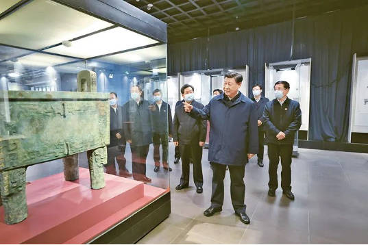 2022年10月26日至28日,中共中央總書記、國家主席、中央軍委主席習(xí)近平在陜西省延安市、河南省安陽市考察。這是28日下午,習(xí)近平在安陽市殷墟博物館考察。 新華社記者 鞠鵬/攝