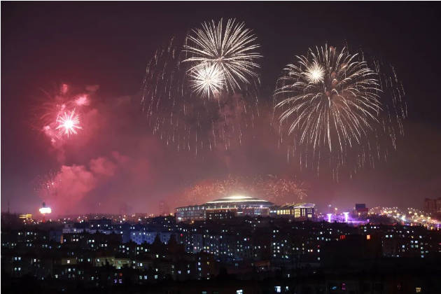 第四篇章:天高地闊、大展宏圖。紅牡丹、綠牡丹、藍牡丹等各色牡丹在空中競相綻放,金菊、銀菊、爆裂菊在空中交織,映照著雞西礦業(yè)公司經(jīng)營利潤再創(chuàng)新高的恢宏氣勢。頻繁變換的五彩禮花顯示了雞西歡樂祥和的節(jié)日氣氛,和共同奮斗共創(chuàng)美好的共同心聲。