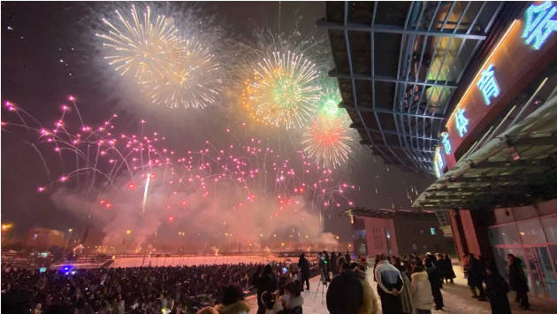 三個燃放區(qū)域、五百余種煙花、上萬枚禮花彈、七萬發(fā)組合禮花在浩瀚夜空競相綻放,在升空最高250米,爆炸半徑最大65米的高空花火中,確保了廣大市民可以在市區(qū)周圍的開闊地點欣賞焰火的絢爛多姿與漫天華彩?;饦溷y花與優(yōu)美悅耳的樂曲完美結(jié)合,營造出團圓、歡樂、幸福、美好的喜慶氛圍。