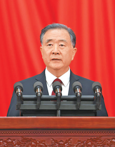 下午3時,王滬寧宣布大會開幕,全體起立,高唱中華人民共和國國歌。