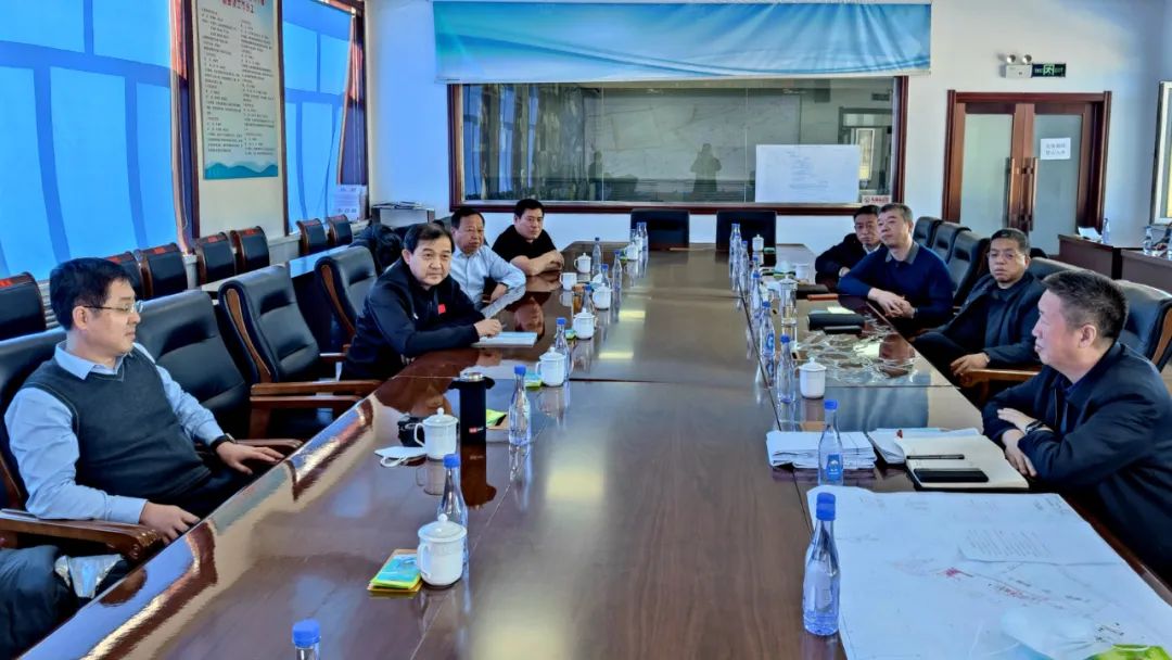 在雙陽礦安全生產(chǎn)指揮中心,劉鵬飛通過大屏幕查看了開拓系統(tǒng)圖、新建副立井系統(tǒng)設計圖、采掘施工平面圖,詳細了解了采區(qū)分布、煤炭儲量、開拓進度等情況,并就有關問題與相關人員進行座談交流。