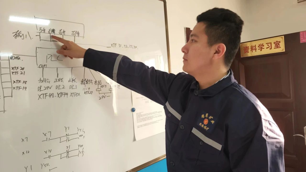 在煤礦科技日新月異的今天,于黎峰充分認識到科技進步對煤礦安全生產(chǎn)的重要性。他自己購買了《電工學》《綜采機電維修》《PLC編程》等電氣維修方面的專業(yè)書籍,潛心學習研究,并將各項新技術(shù)、新工藝與實際工作相結(jié)合,他自主設(shè)計、獨立完成移動變壓器和軟啟動開關(guān)的PLC程序編寫工作。以低價購進空白PLC,裝入程序,功能與外購的完全相同。2021年1月,經(jīng)過不懈努力,他在采煤機外掛電控系統(tǒng)的主電路繪制工作方面取得突破性進展,并成功完成試驗機的組裝和調(diào)試,此系統(tǒng)體積小,結(jié)構(gòu)簡單,可以實現(xiàn)在采煤機原有電氣系統(tǒng)發(fā)生任何故障時替換使用,不影響生產(chǎn)。
