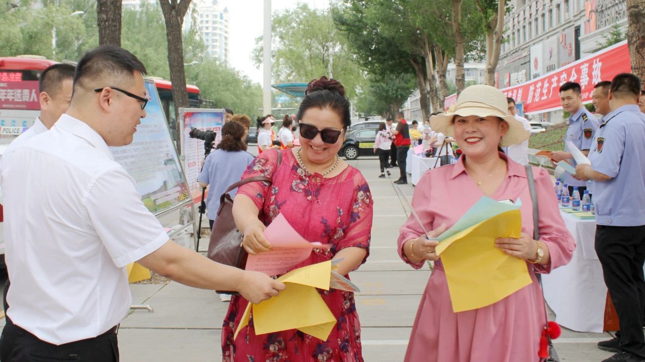 在“安全宣傳咨詢?nèi)铡被顒又?,共發(fā)放安全宣傳單1萬余份,安全扇1000個,設(shè)立安全宣傳展板120余塊。