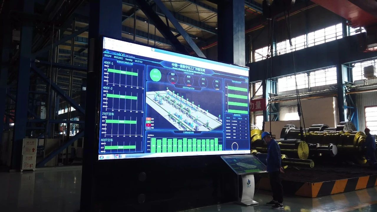 中國一重生產(chǎn)車間內(nèi)的電子大屏