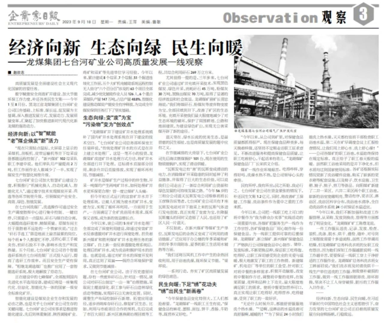 經(jīng)濟(jì)向新 生態(tài)向綠 民生向暖 ——龍煤集團(tuán)七臺(tái)河礦業(yè)公司高質(zhì)量發(fā)展一線觀察