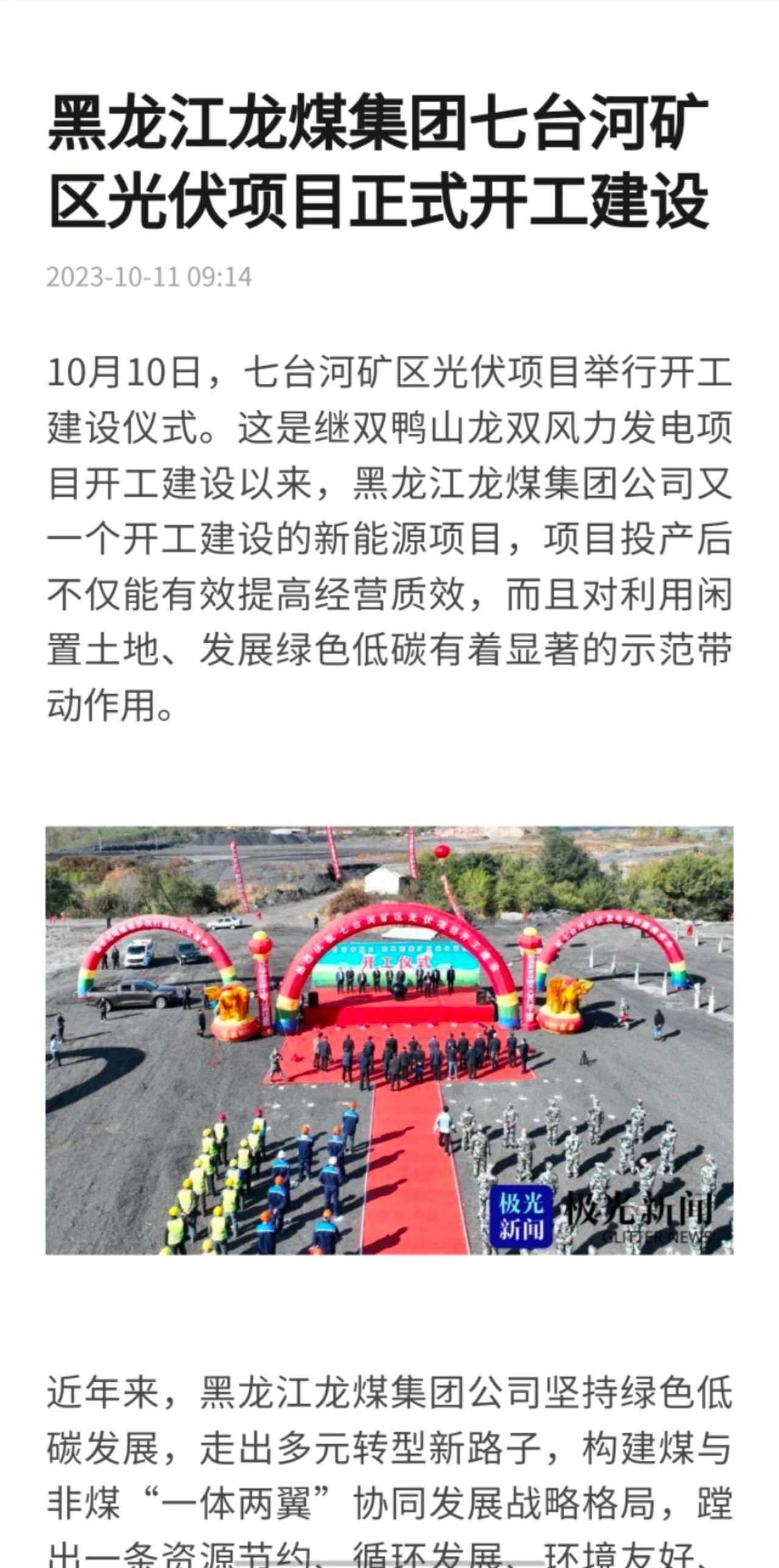 【龍煤形象】多家媒體對(duì)七臺(tái)河礦區(qū)光伏項(xiàng)目開工建設(shè)進(jìn)行報(bào)道