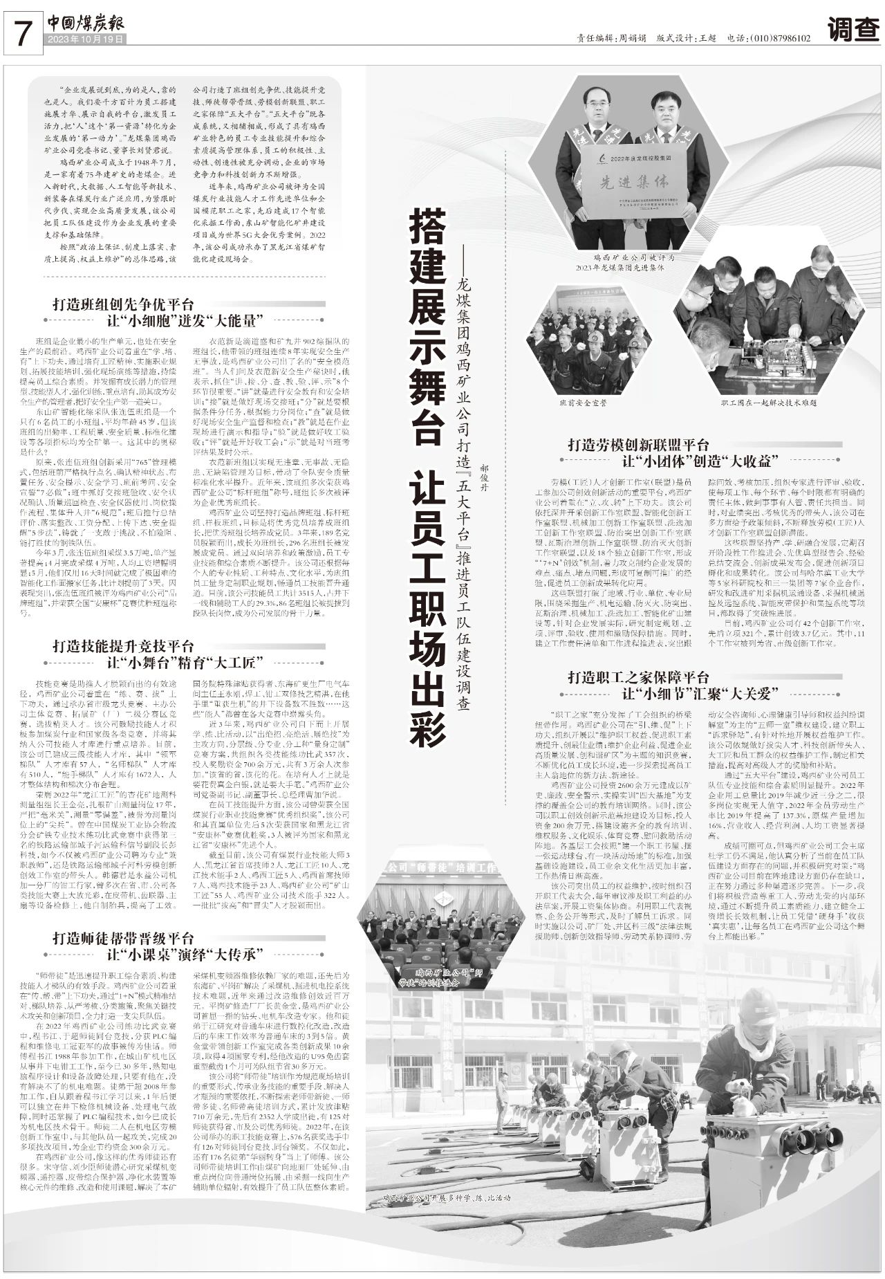 2023年10月19日,《中國煤炭報(bào)》專版報(bào)道雞西礦業(yè)公司打造“五大平臺”推進(jìn)員工隊(duì)伍建設(shè)成果。