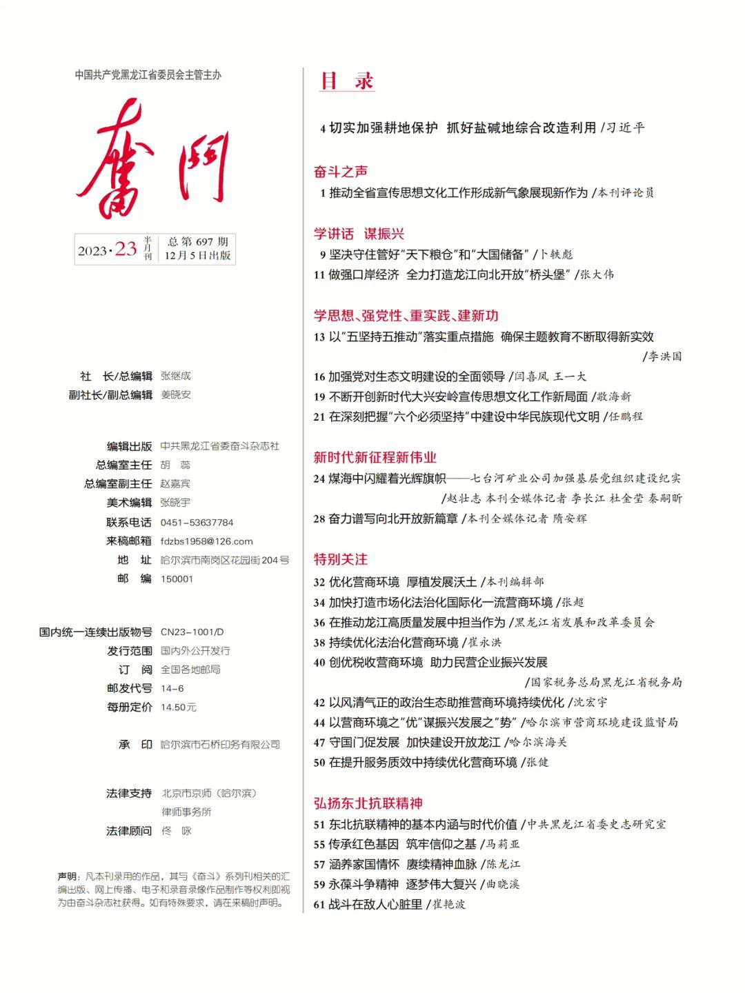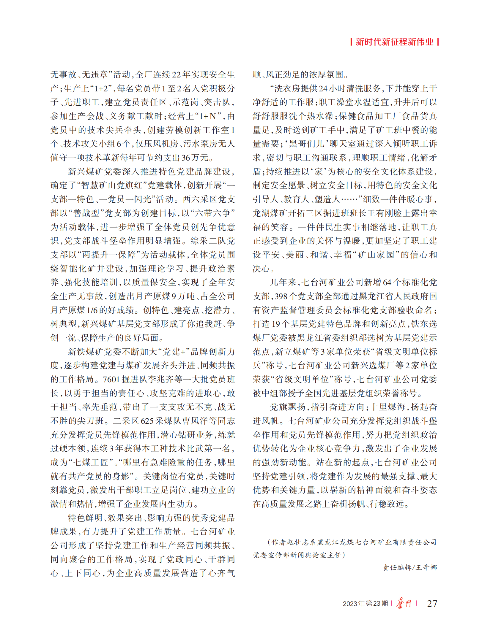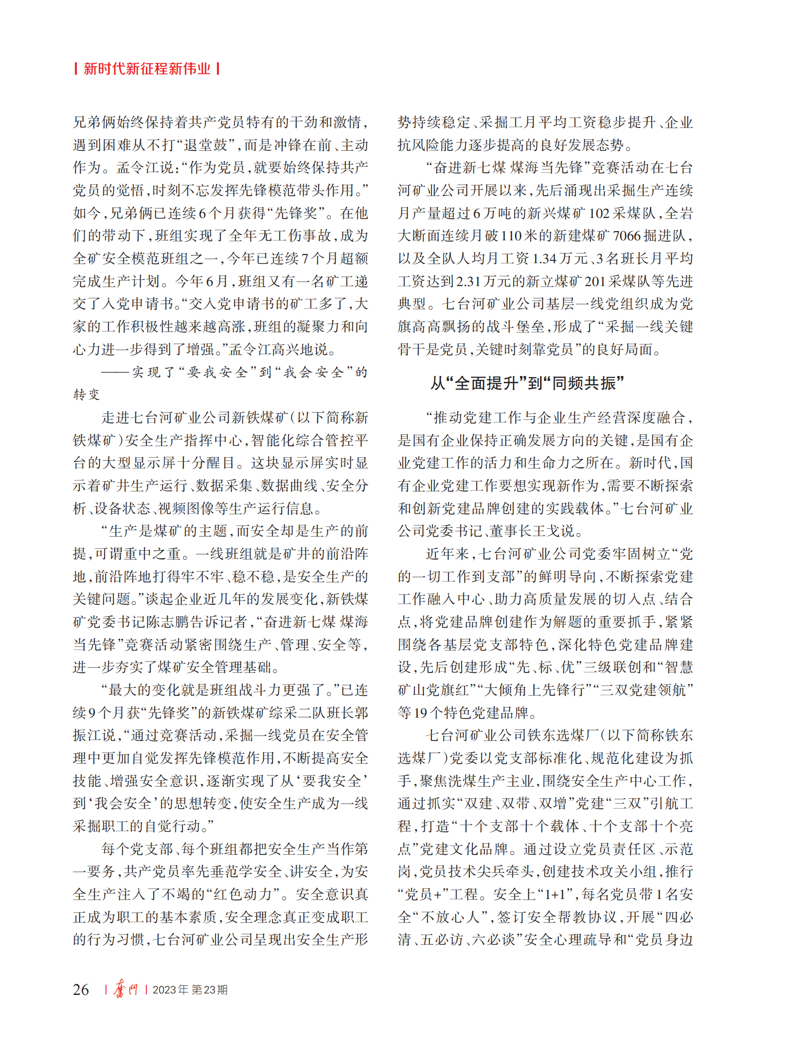 12月5日,中共黑龍江省委《奮斗》雜志2023年第23期新時代新征程新偉業(yè)欄目,刊發(fā)《煤海中閃耀著光輝旗幟——七臺河礦業(yè)公司加強基層黨組織建設(shè)紀實》一文。