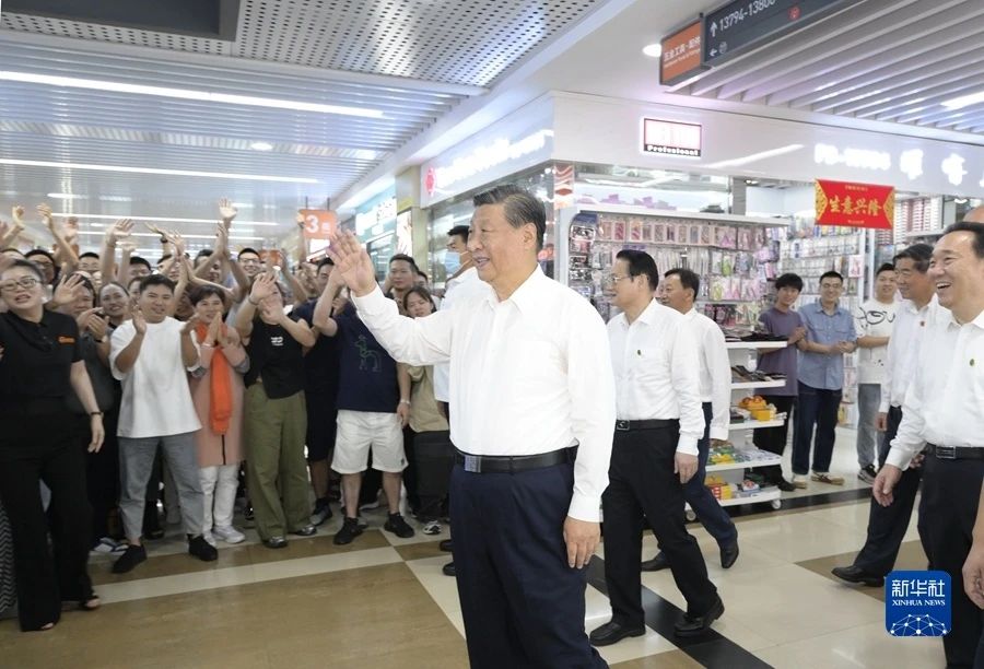 2023年9月20日,習(xí)近平在浙江省金華市義烏市義烏國(guó)際商貿(mào)城考察時(shí),同商戶親切交流。新華社記者 李學(xué)仁 攝