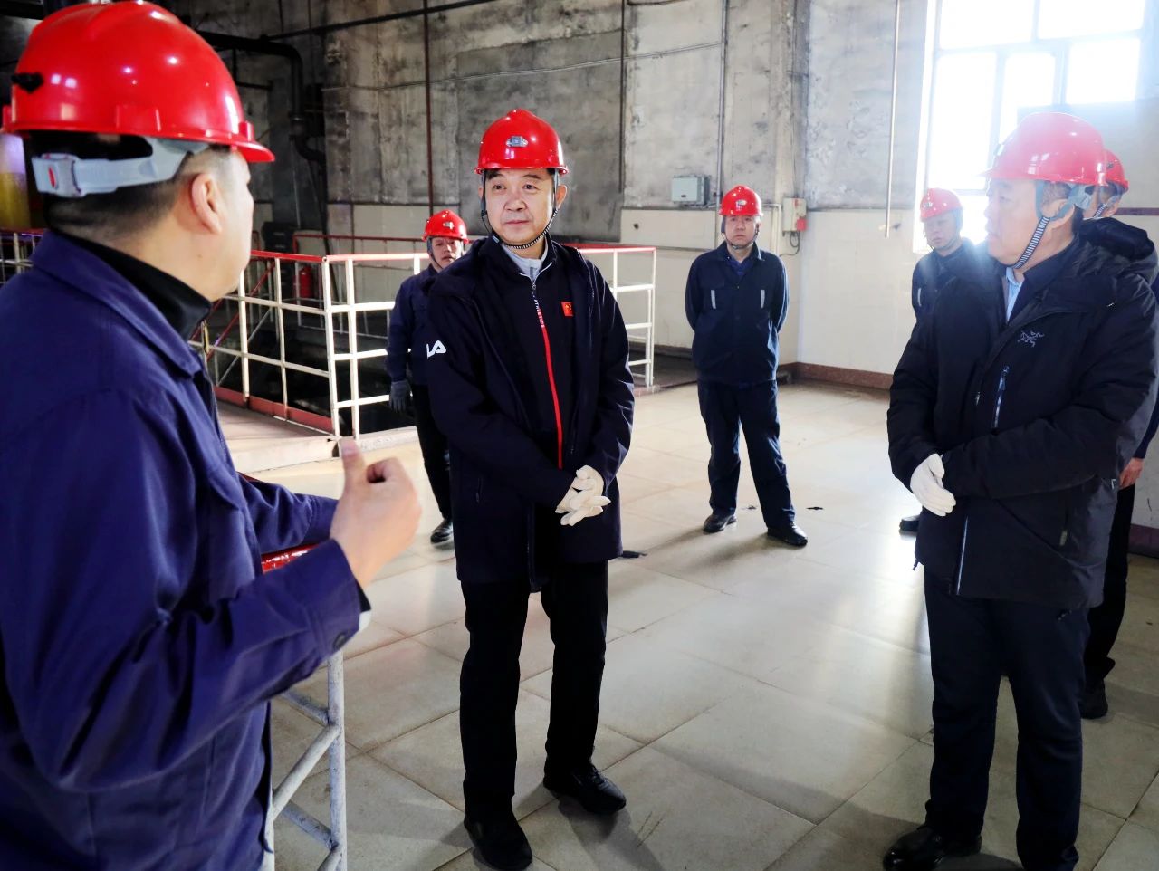 在選煤總廠、新一選煤廠劉鵬飛先后來到主控制室、生產(chǎn)作業(yè)現(xiàn)場,查看節(jié)日期間安全生產(chǎn)情況。在誠基供電公司,劉鵬飛與一線干部職工一一握手,互致問候,并聽取工作匯報,詳細了解轉(zhuǎn)供電等情況。