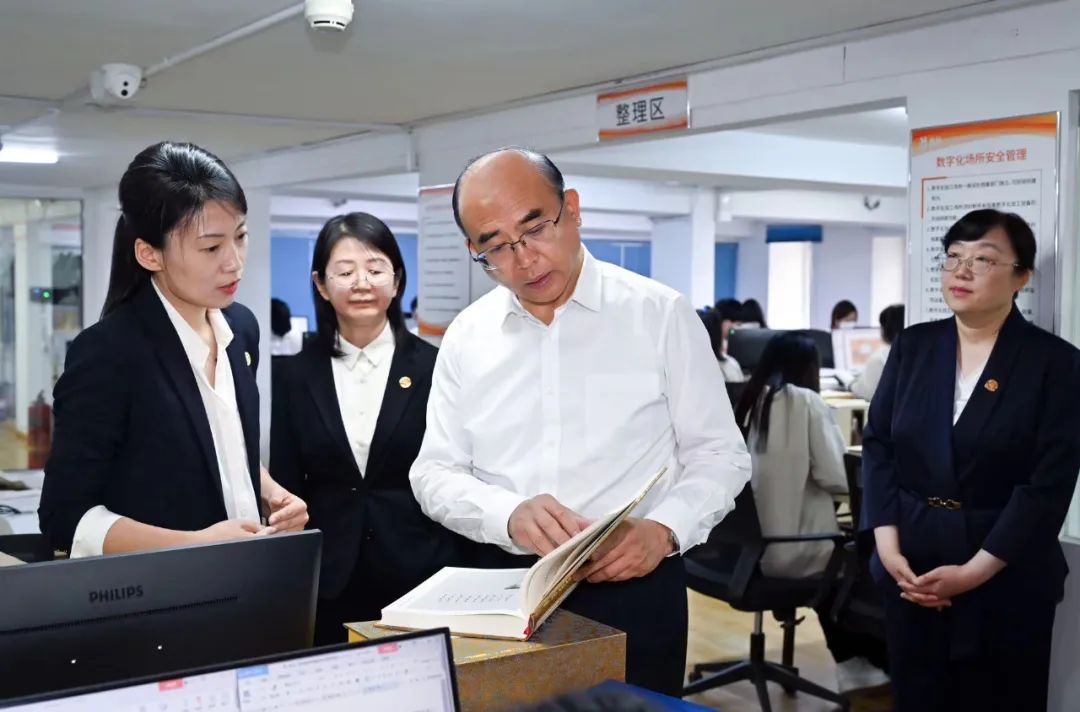 調(diào)研中許勤指出,檔案工作記錄歷史、傳承文明、服務(wù)社會,利國利民、功在千秋。全省各級檔案部門要提高政治站位,認(rèn)真學(xué)習(xí)貫徹習(xí)近平總書記關(guān)于新時代檔案工作重要指示精神,牢記“檔案工作姓黨”政治屬性,擔(dān)起為黨管檔、為國守史、為民服務(wù)重要職責(zé),把旗幟鮮明講政治貫穿檔案工作全過程各方面,確保檔案事業(yè)始終沿著正確政治方向前進。要存好用好檔案資源,充分發(fā)揮檔案存史資政育人重要作用,全面做好檔案收集管理,深入開展檔案編研工作,保管好利用好黨的百年光輝歷程中的龍江紅色檔案,記錄好留存好推進強國復(fù)興偉業(yè)中的龍江奮斗實踐,用檔案銘刻歷史記憶、賡續(xù)紅色血脈、激發(fā)奮進力量。要提升檔案治理效能,宣傳貫徹檔案法及實施條例,加快修訂地方性法規(guī),積極推進檔案管理數(shù)字化、智能化轉(zhuǎn)型,著力提高檔案工作現(xiàn)代化水平。要筑牢檔案安全防線,加強檔案館庫建設(shè)管理,完善人防、物防、技防措施,加強風(fēng)險隱患排查治理,確保檔案實體和信息安全。許勤強調(diào),要堅持和加強黨對檔案工作的領(lǐng)導(dǎo),強化檔案部門自身建設(shè),深入開展黨紀(jì)學(xué)習(xí)教育,深化能力作風(fēng)建設(shè),打造高素質(zhì)專業(yè)化檔案干部人才隊伍,抓好檔案知識宣傳普及,引導(dǎo)社會公眾認(rèn)識檔案價值、增強檔案意識,營造全社會關(guān)心支持檔案工作良好氛圍,不斷開創(chuàng)龍江檔案事業(yè)發(fā)展新局面。