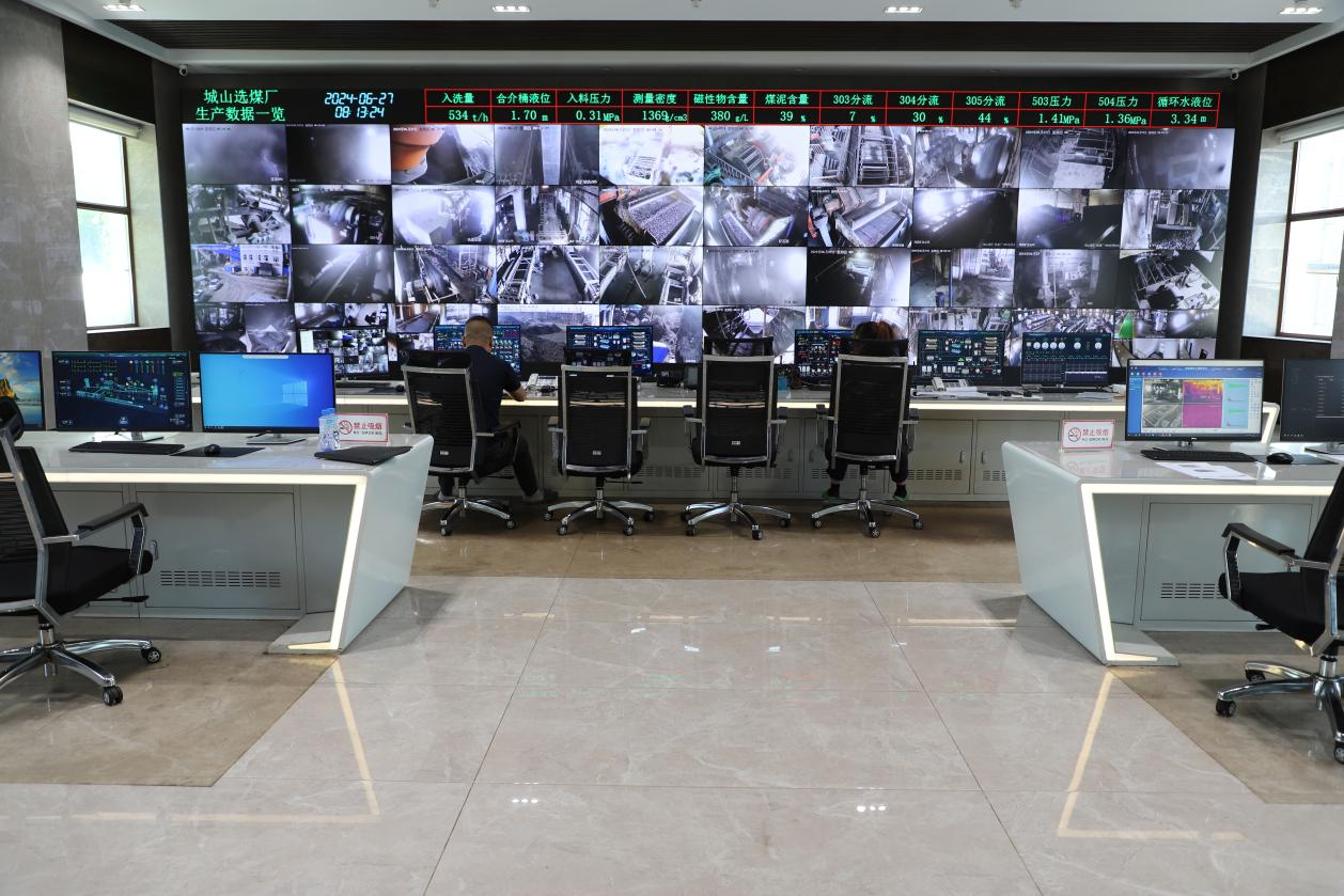 城山礦選煤廠智能集控中心一眼望去充滿了“科技范兒”