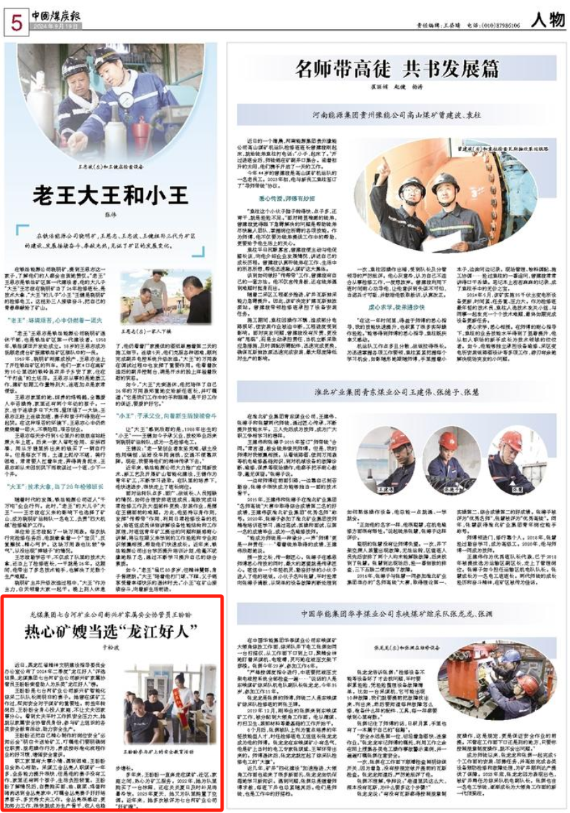 近日,黑龍江省精神文明建設(shè)指導(dǎo)委員會(huì)辦公室公布了2024年二季度“龍江好人”評選結(jié)果,龍煤集團(tuán)七臺河礦業(yè)公司新興礦家屬協(xié)管員王盼盼榮登助人為樂類“龍江好人”榜。