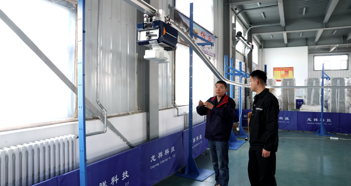 周權(quán)(右)在龍祥公司參觀智能化建設(shè)成果 攝影 呂巖